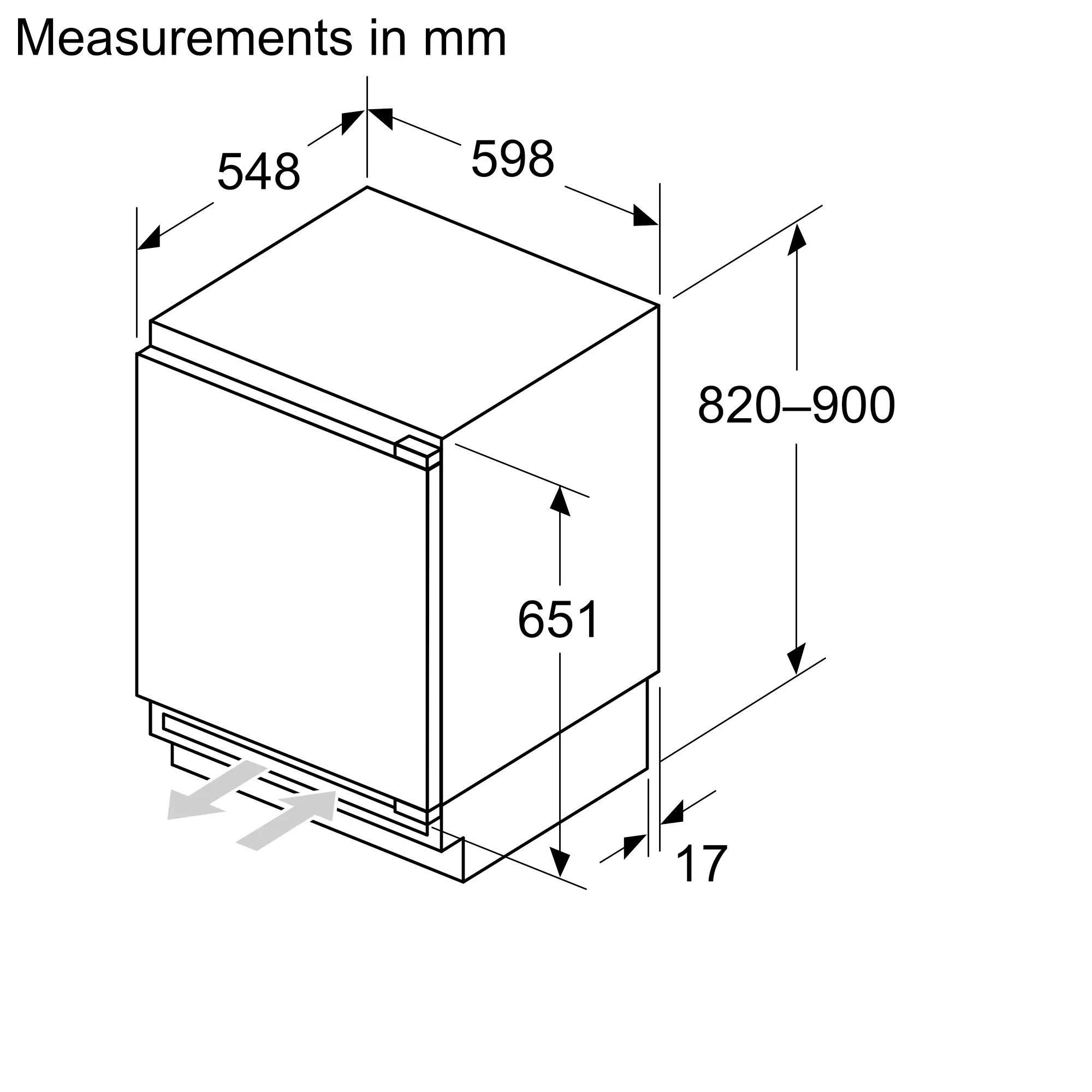 سلسلة الطرازات Serie 4 ثلاجة تثبت بالأسفل 82 x 59.8 cm مفصلة مسطحةKUR21VFE0M