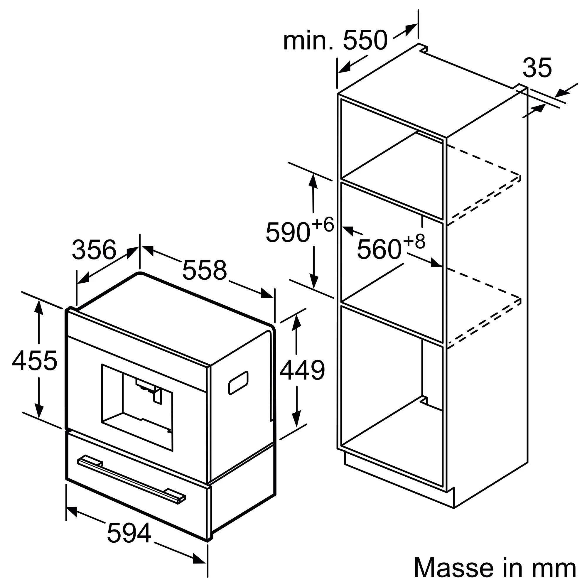 Nischenmaße für Installation (H x B x T)