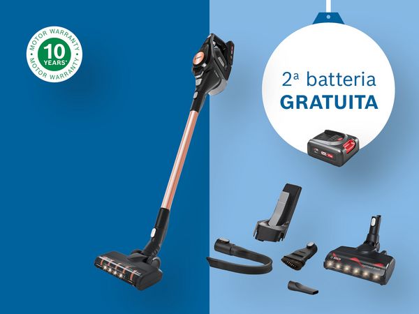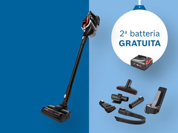 L’offerta « 2ª batteria gratis » è valida per BSS81POW1 e BCS8214PRQ. La seconda batteria gratuita corrisponde a quella originale inclusa con il prodotto e viene aggiunta automaticamente al carrello.