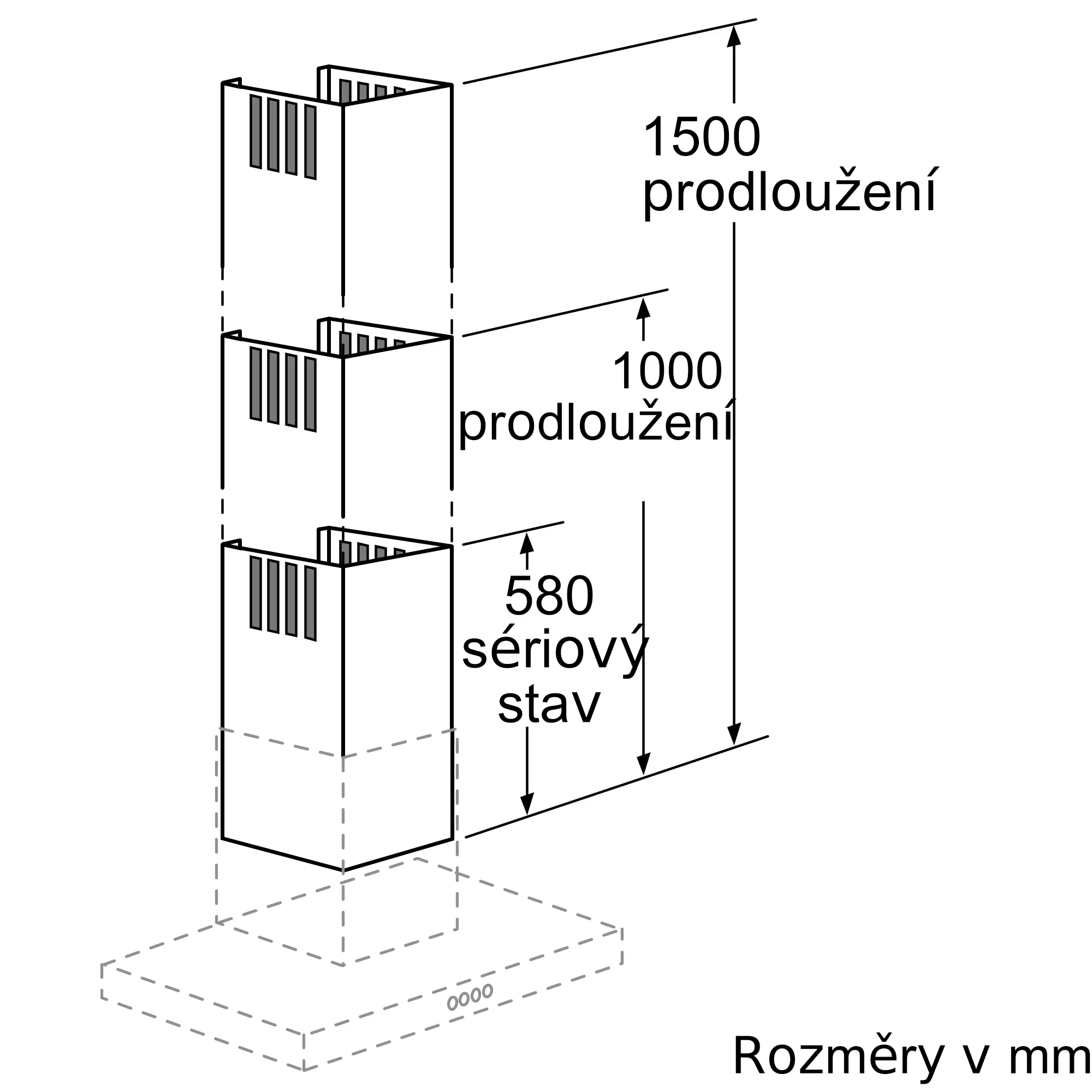 teleskopické prodloužení, 1000 mm, pro komínové odsavače par