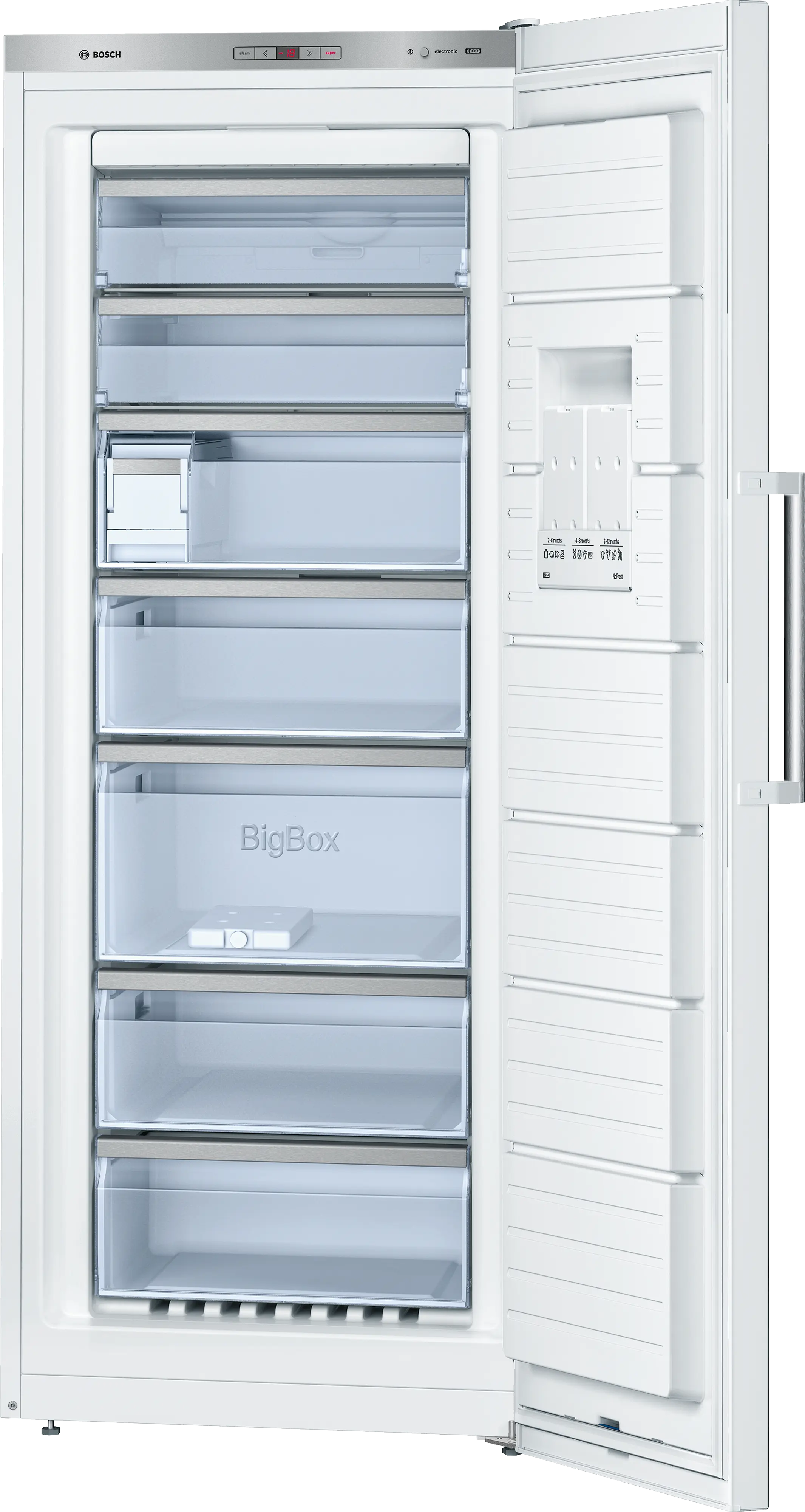 Zásuvka Big Box: pro stohování skladovacích nádob nebo pro velké zmrazené potraviny.