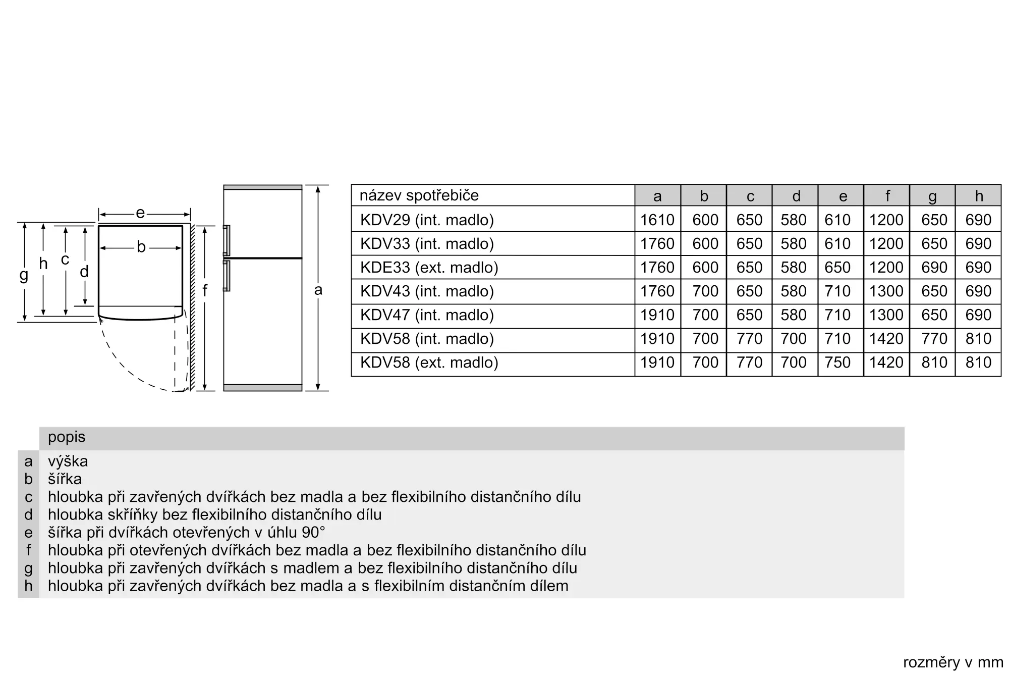 Rozměry spotřebiče