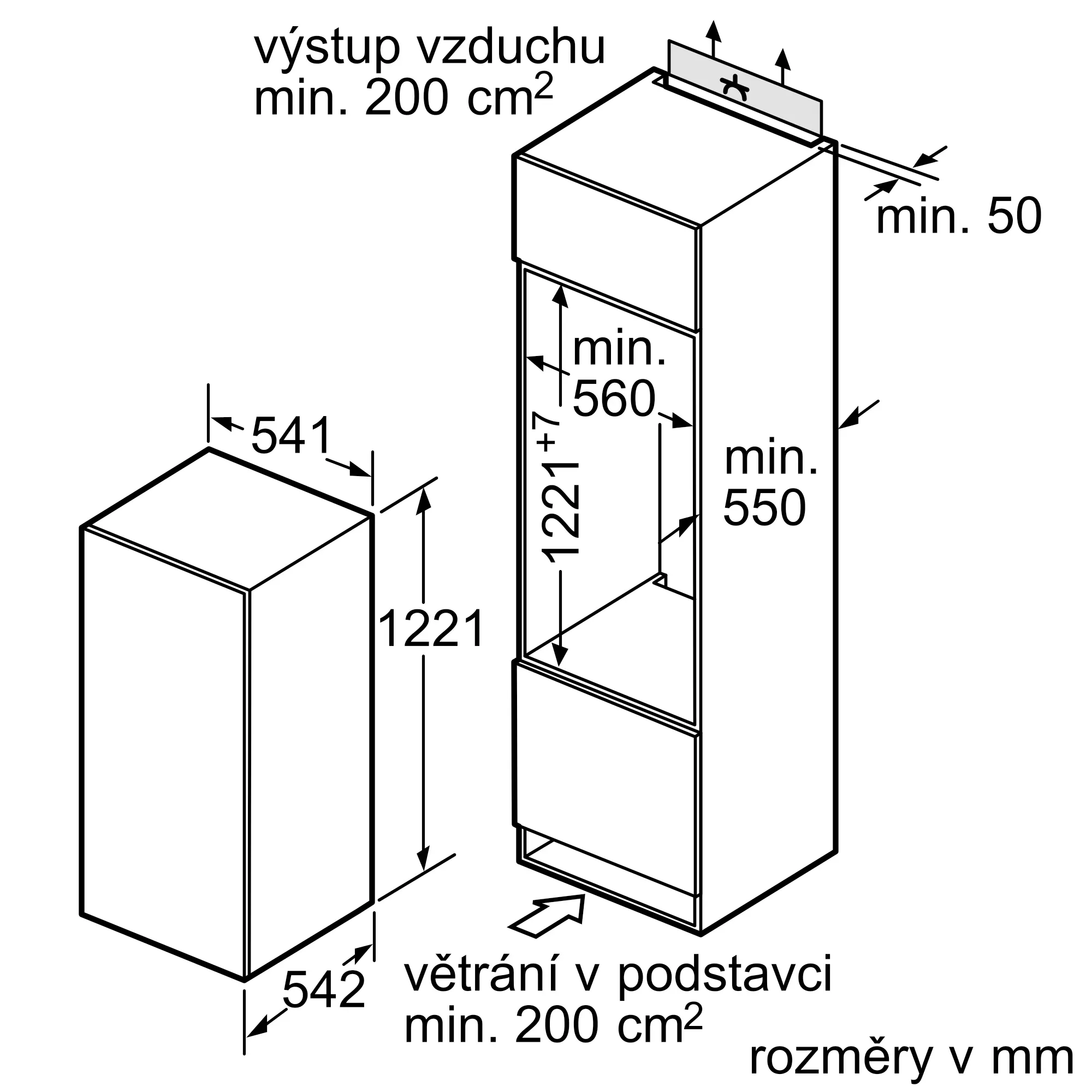 1221x541x542 mm