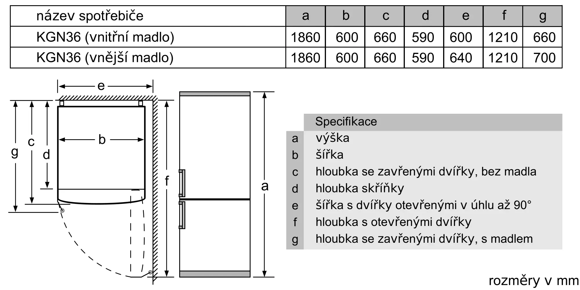 Rozměry spotřebiče