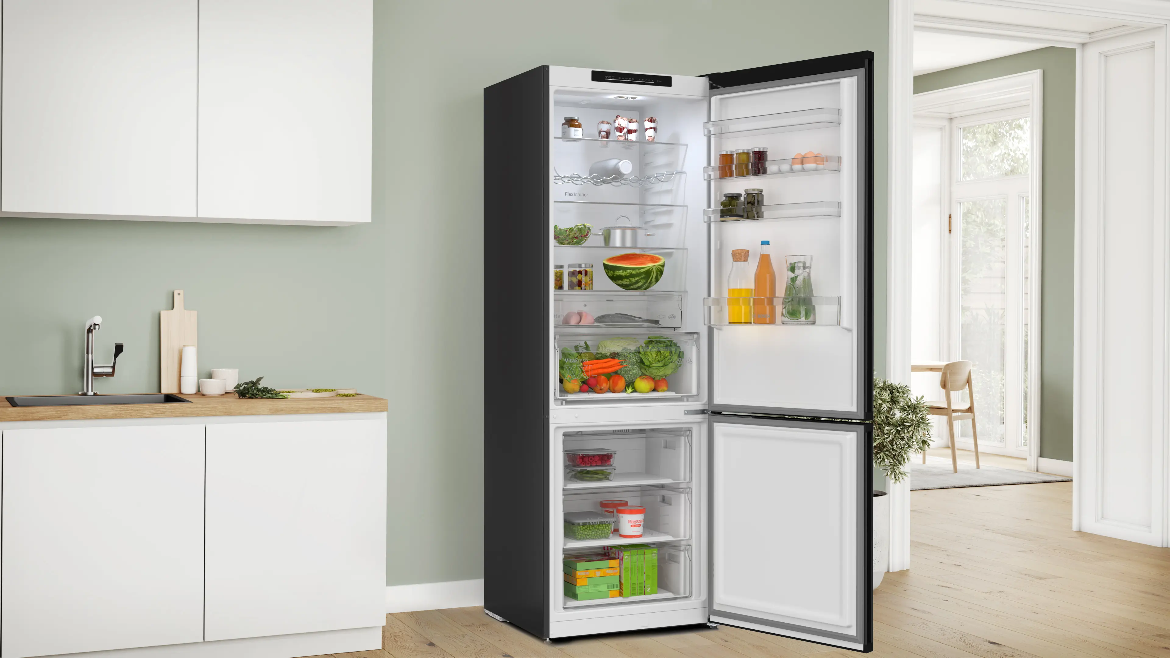 Serie 4 Volně stojící chladnička s mrazničkou dole 203 x 70 cm černá matná ocel s úpravou proti otiskům prstů, Total No FrostKGN492XCF