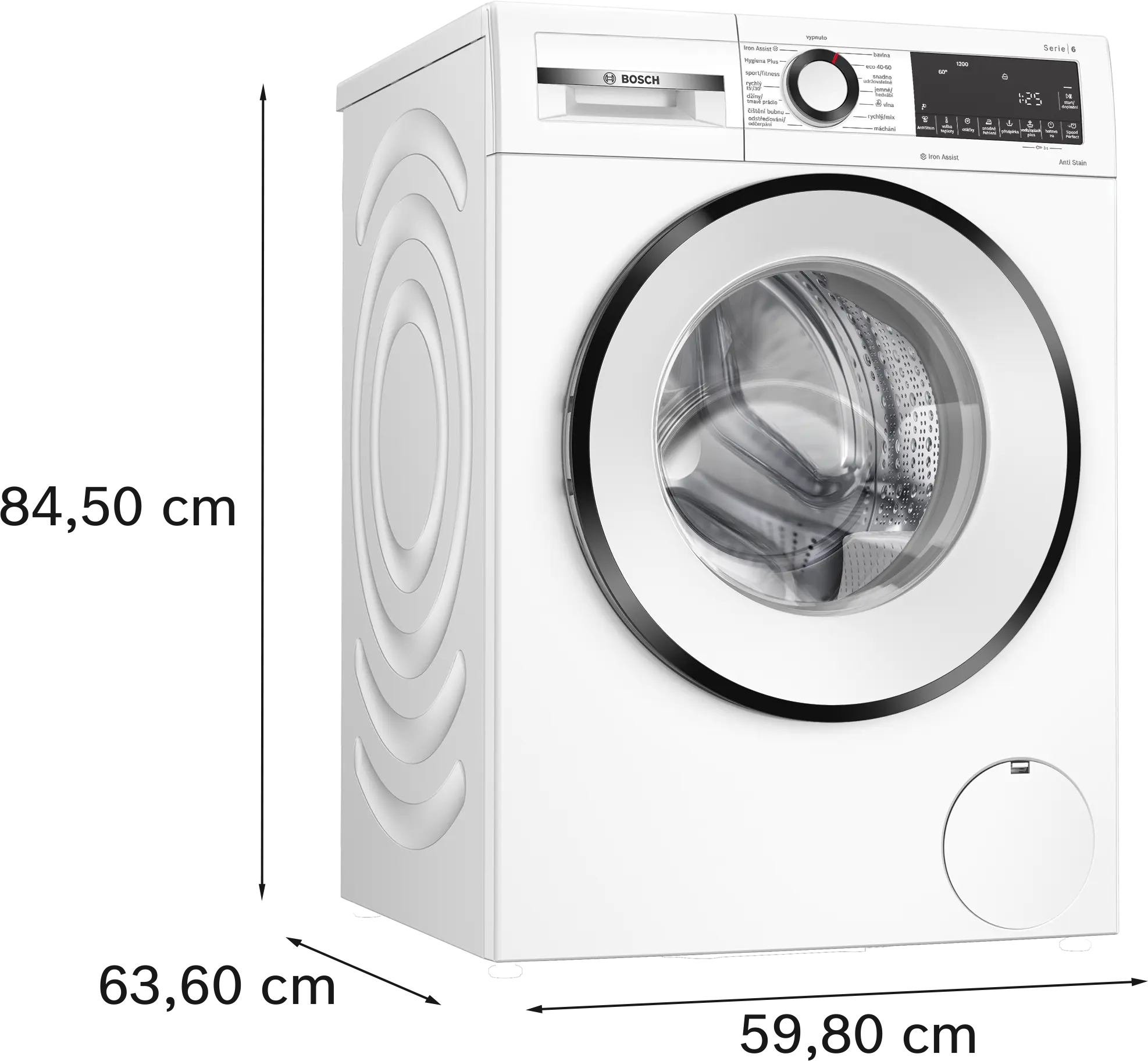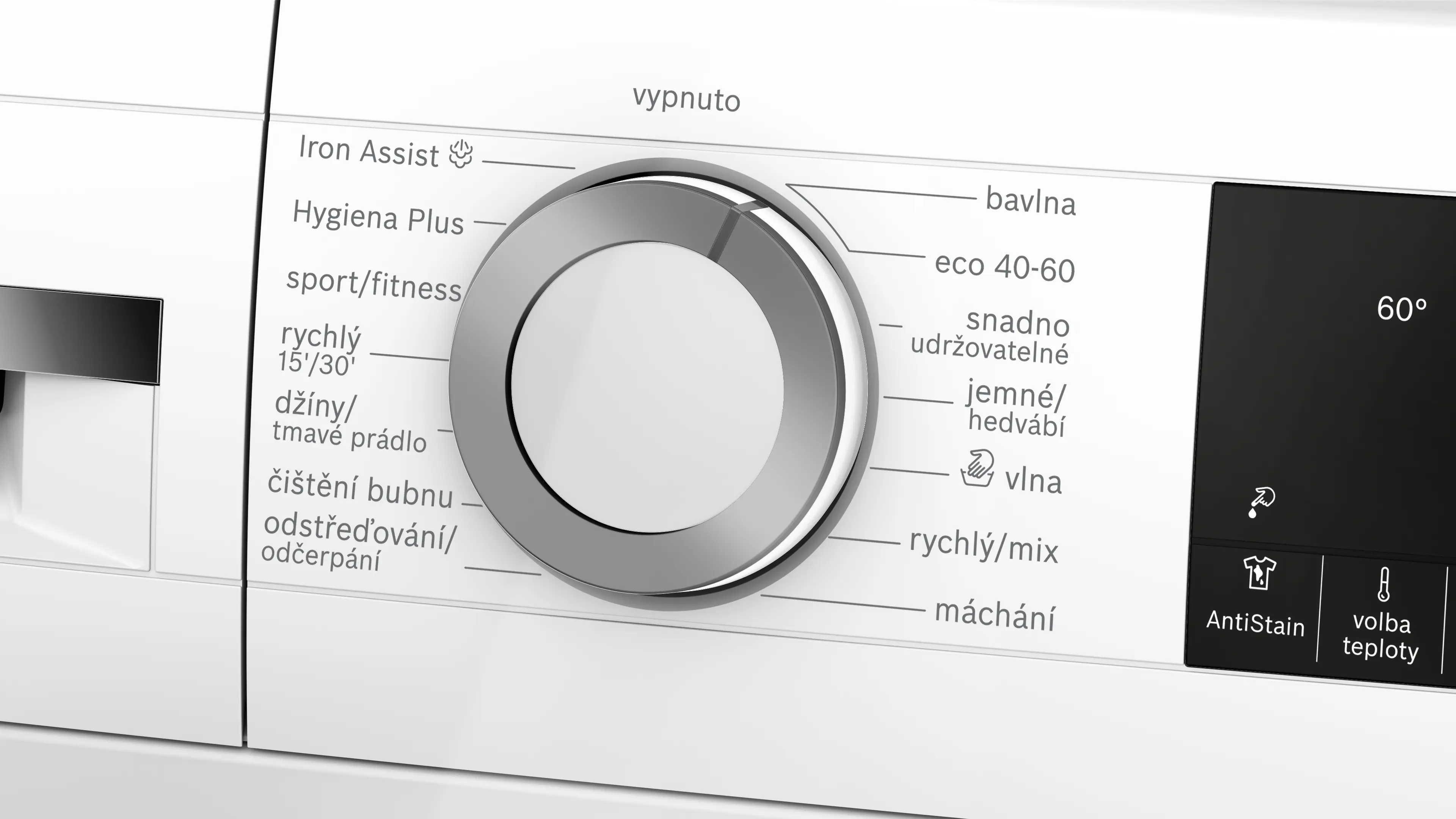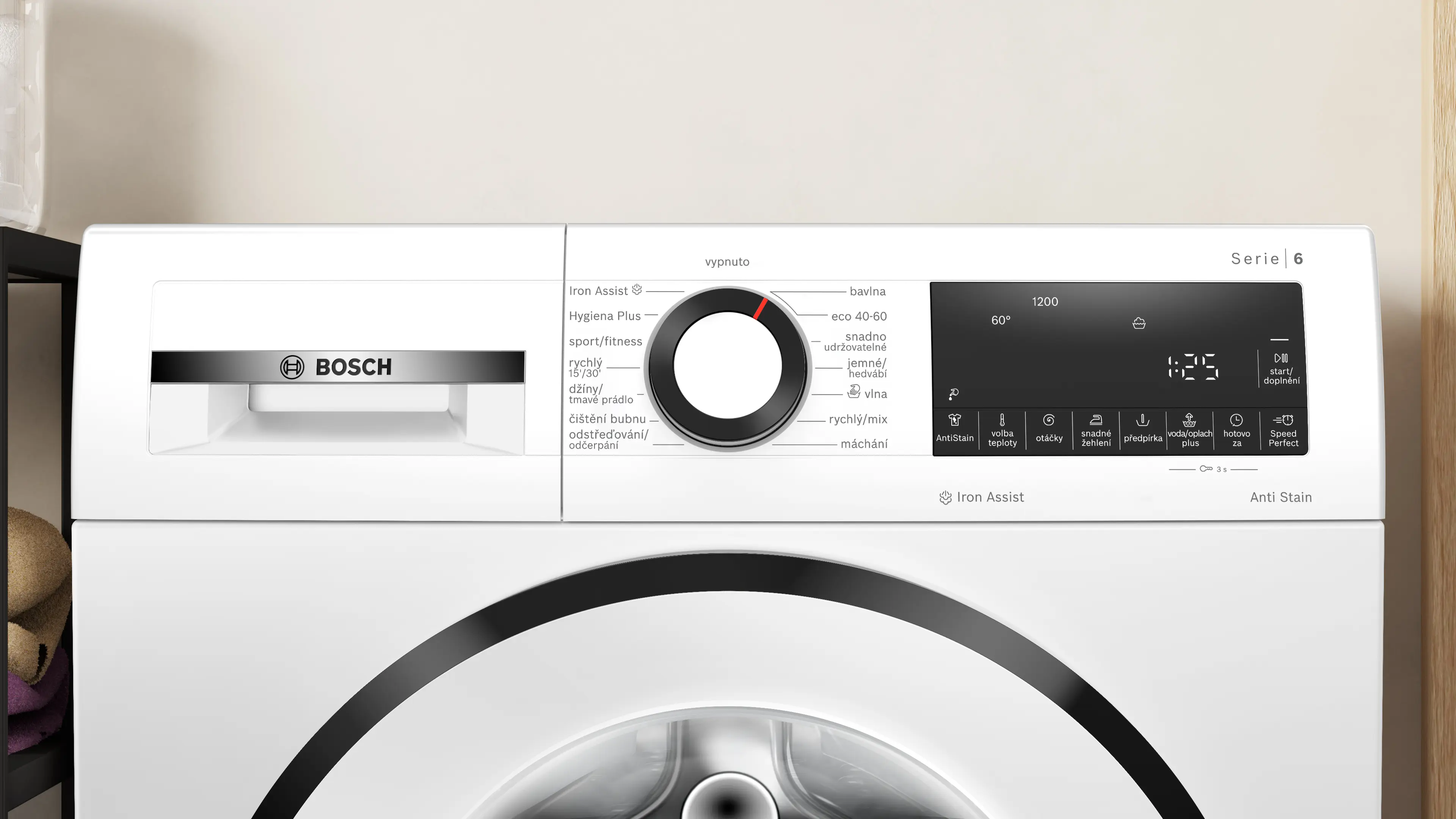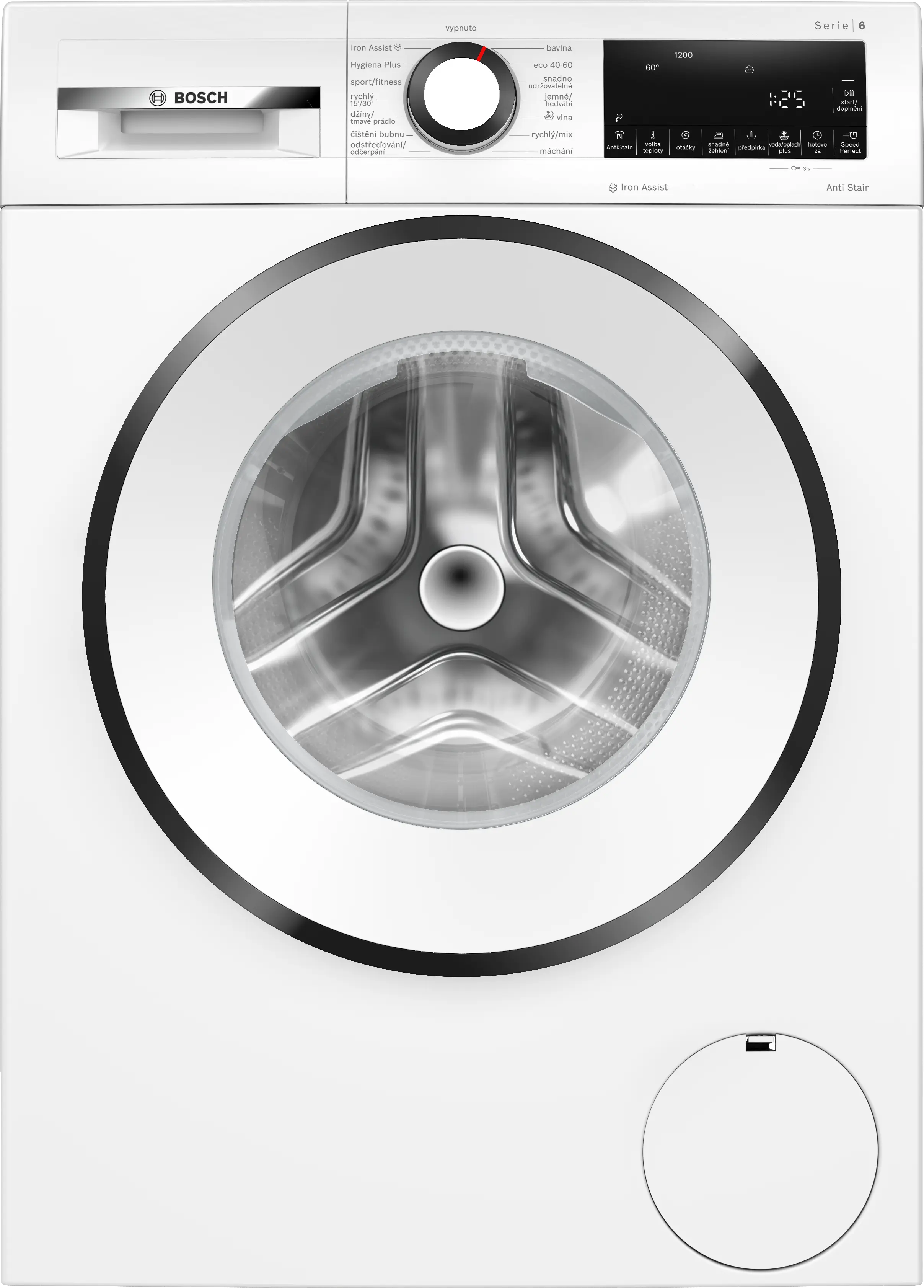 Maximální rychlost odstřeďováníPoznámka pod čarou 1: maximální rychlost odstředění se automaticky sníží v případě nerovnoměrného rozložení prádla: 1200 otáček za minutu