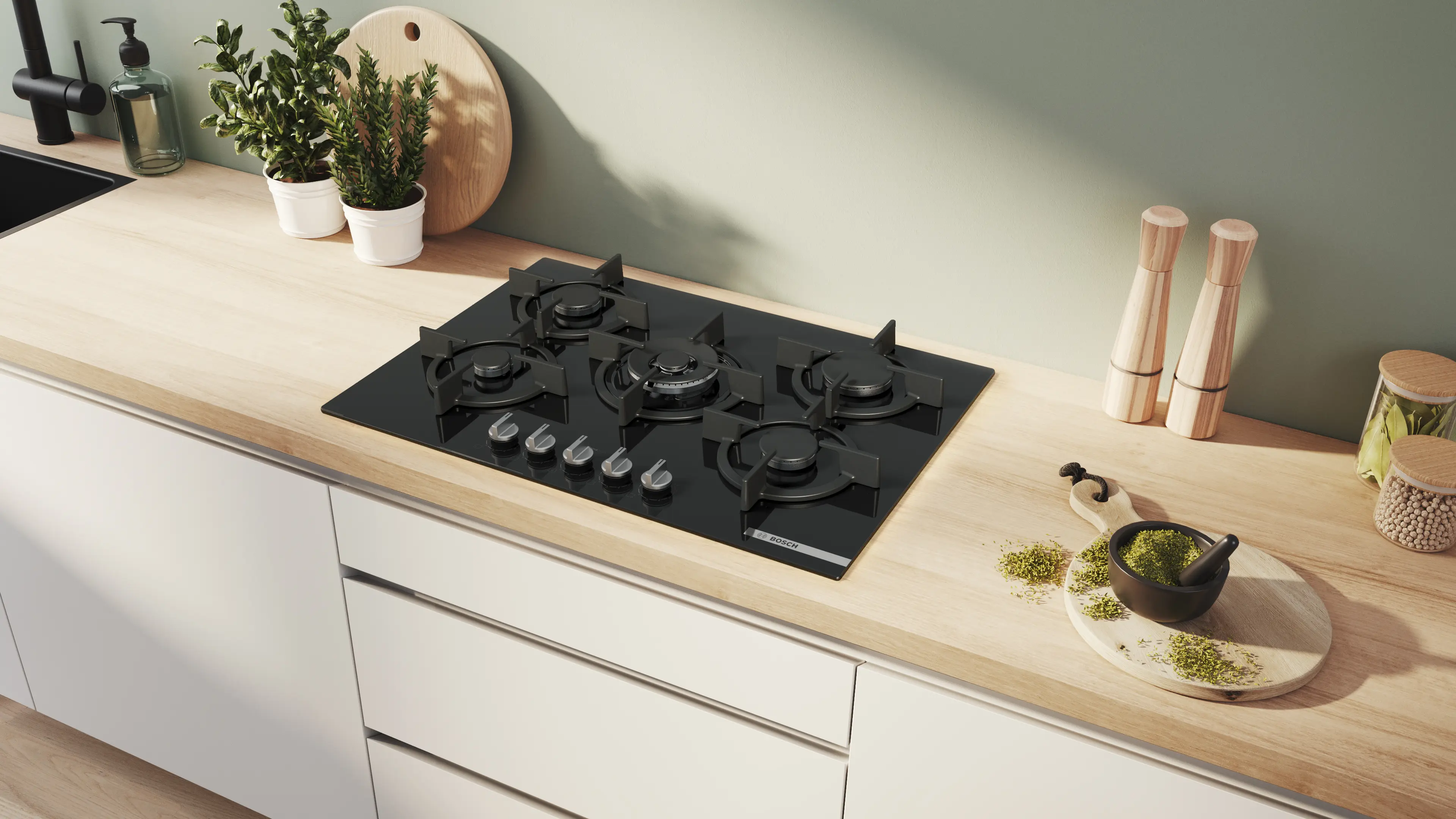 Serie 6 Plynová varná deska 75 cm tvrzené sklo, černáPPQ7A6I10