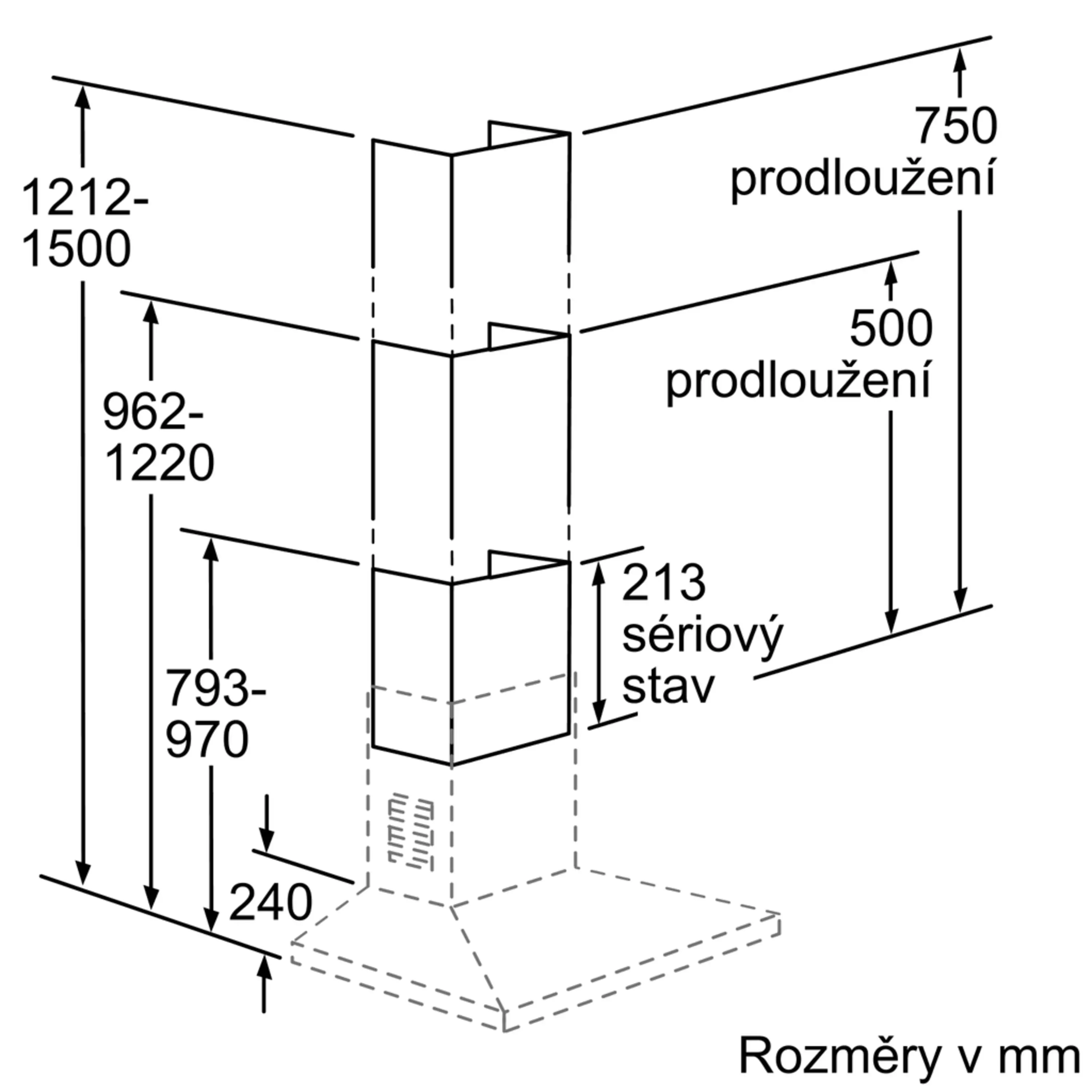 teleskopické prodloužení, 750 mm, pro komínové odsavače par