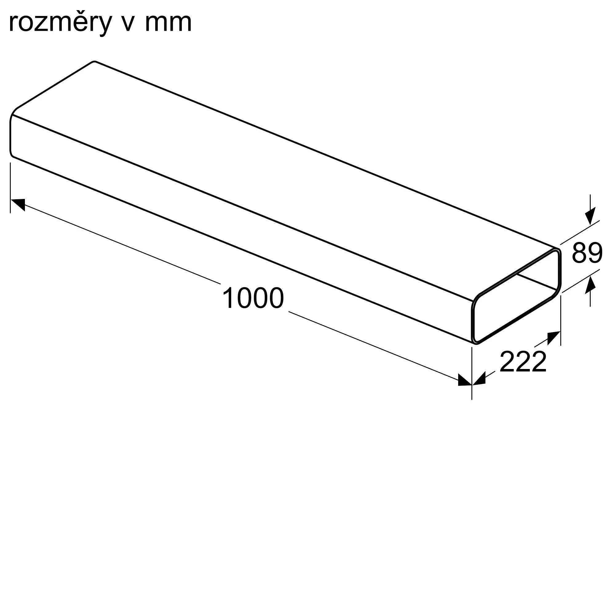rovný prvek plochého potrubí (1 000 mm, vnější)