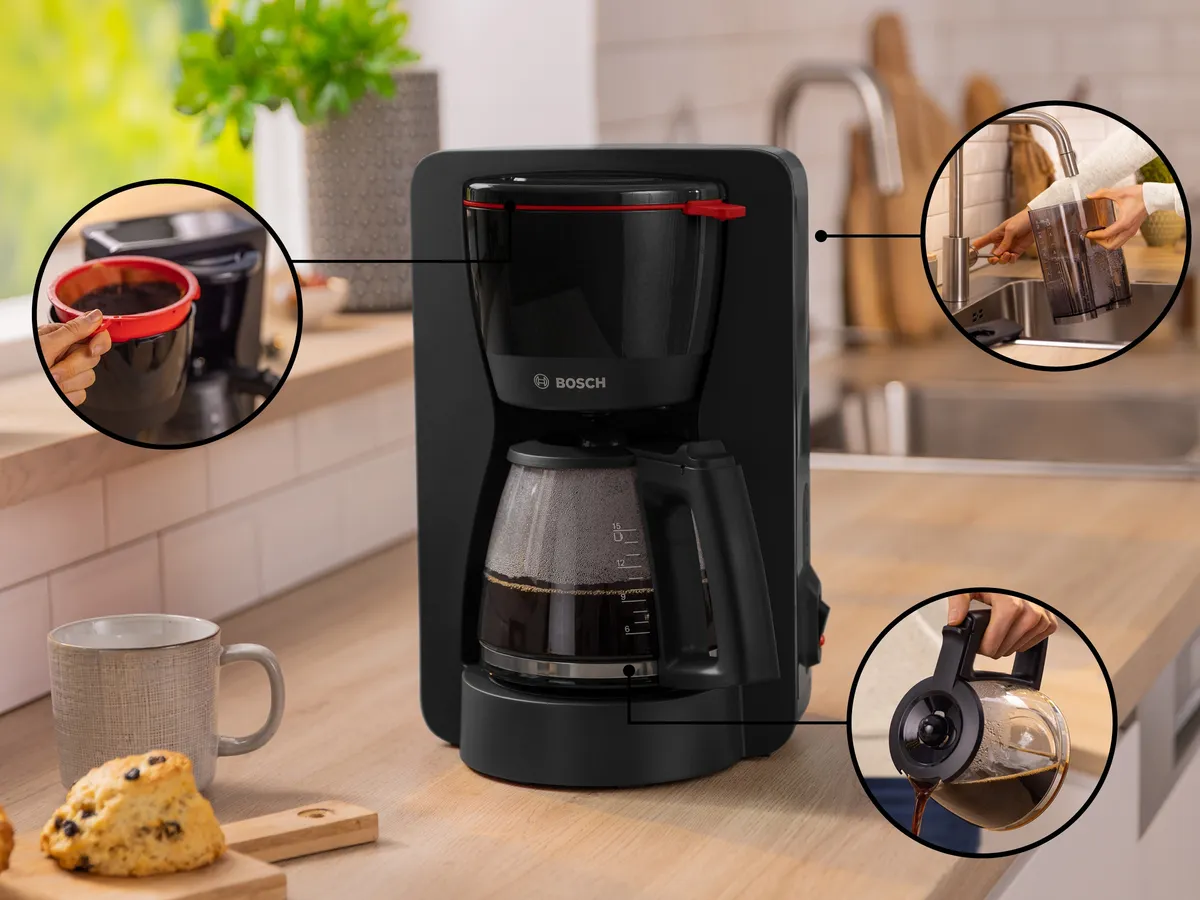 Du liebst eine klassisch gute Tasse Kaffee ganz nach deinem Geschmack? Bosch Filterkaffeemaschinen sorgen mit optimalem Brühvorgang für ein besonders intensives Kaffeearoma. Entdecke unsere verschiedenen Produktreihen mit individuellen Funktionen und Extras. Wähle aus den Reihen Styline, ComfortLine, CompactClass oder der DesignLine die Filterkaffeemaschine aus, die am besten zu dir passt. Wende dafür einfach den Filter an!