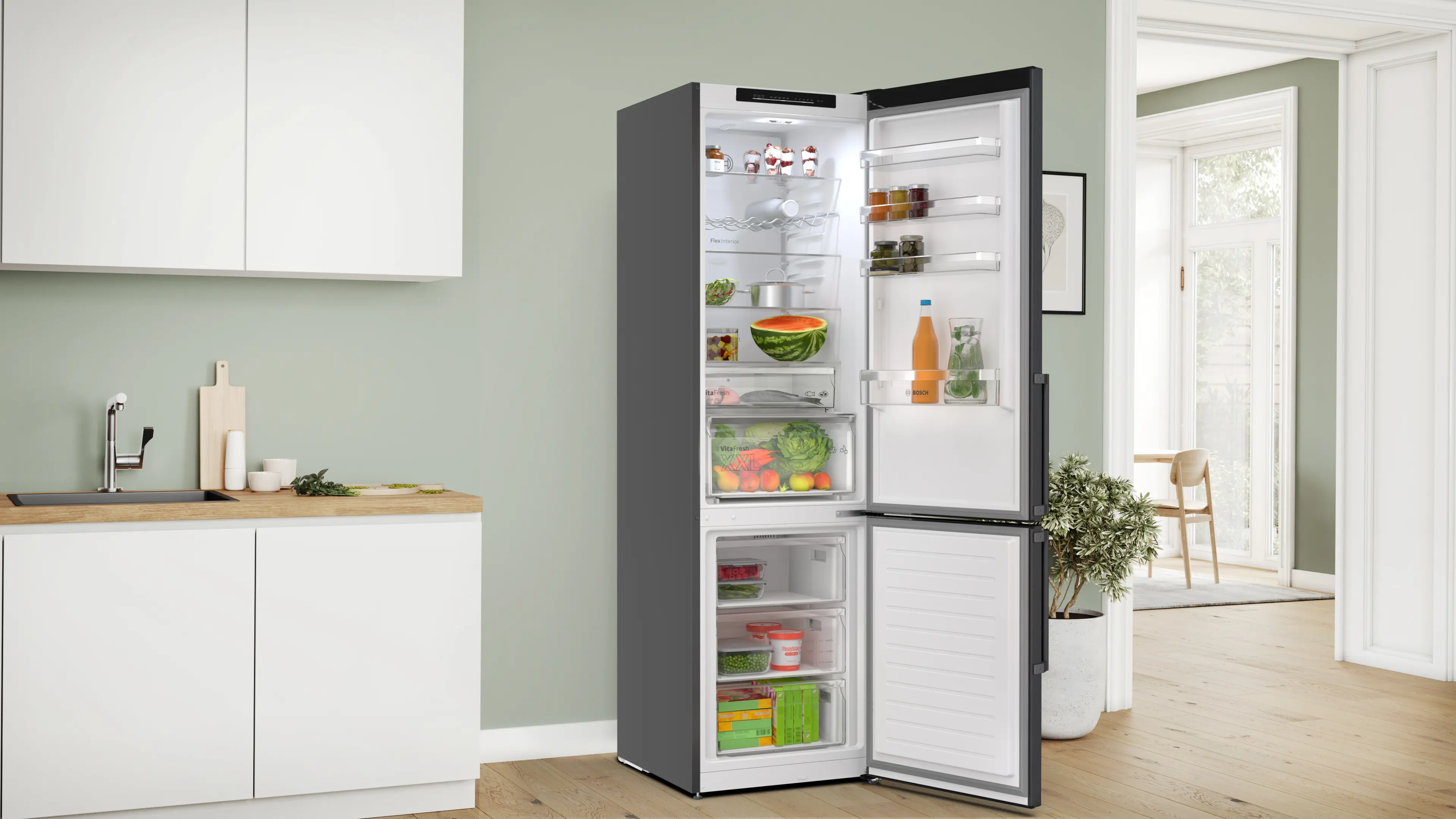 Serie 4 Freistehende Kühl-Gefrier-Kombination mit Gefrierbereich unten Gebürsteter schwarzer Stahl AntiFingerprint, Total No Frost MKK69GNXAO