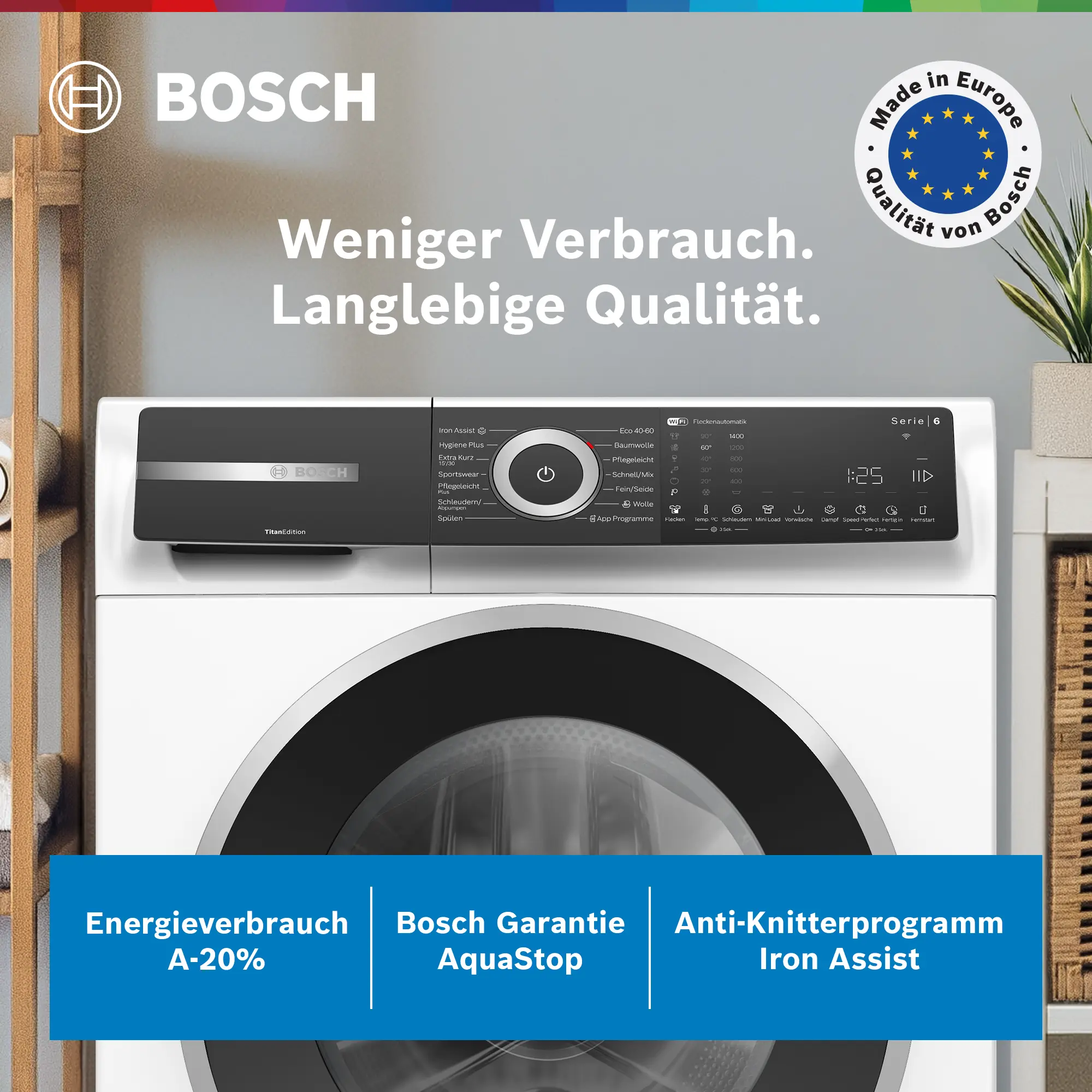 Vernetzte Hausgeräte mit Home Connect Fußnote 3: Wir stellen von Zeit zu Zeit funktionserhaltende Aktualisierungen (insbesondere Sicherheitsaktualisierungen) für vernetzte Hausgeräte bereit. Solche Updates sind von Smartphones bekannt. Um über die Verfügbarkeit eines solchen Updates für ein Home Connect-fähiges Gerät informiert zu werden, kann wie folgt vorgegangen werden: Home Connect App herunterladen. Gerät in der App registrieren und verbinden. In der Home Connect App stehen dann weitere Informationen bereit.,Fußnote 4: Einige der gezeigten Funktionen können nur genutzt werden, wenn das Gerät über das Internet mit einem Home Connect Account und einem Single-Key-ID-Account verbunden ist. Home Connect ist ein Service der Home Connect GmbH. Mehr Informationen zu Home Connect unter www.home-connect.com.