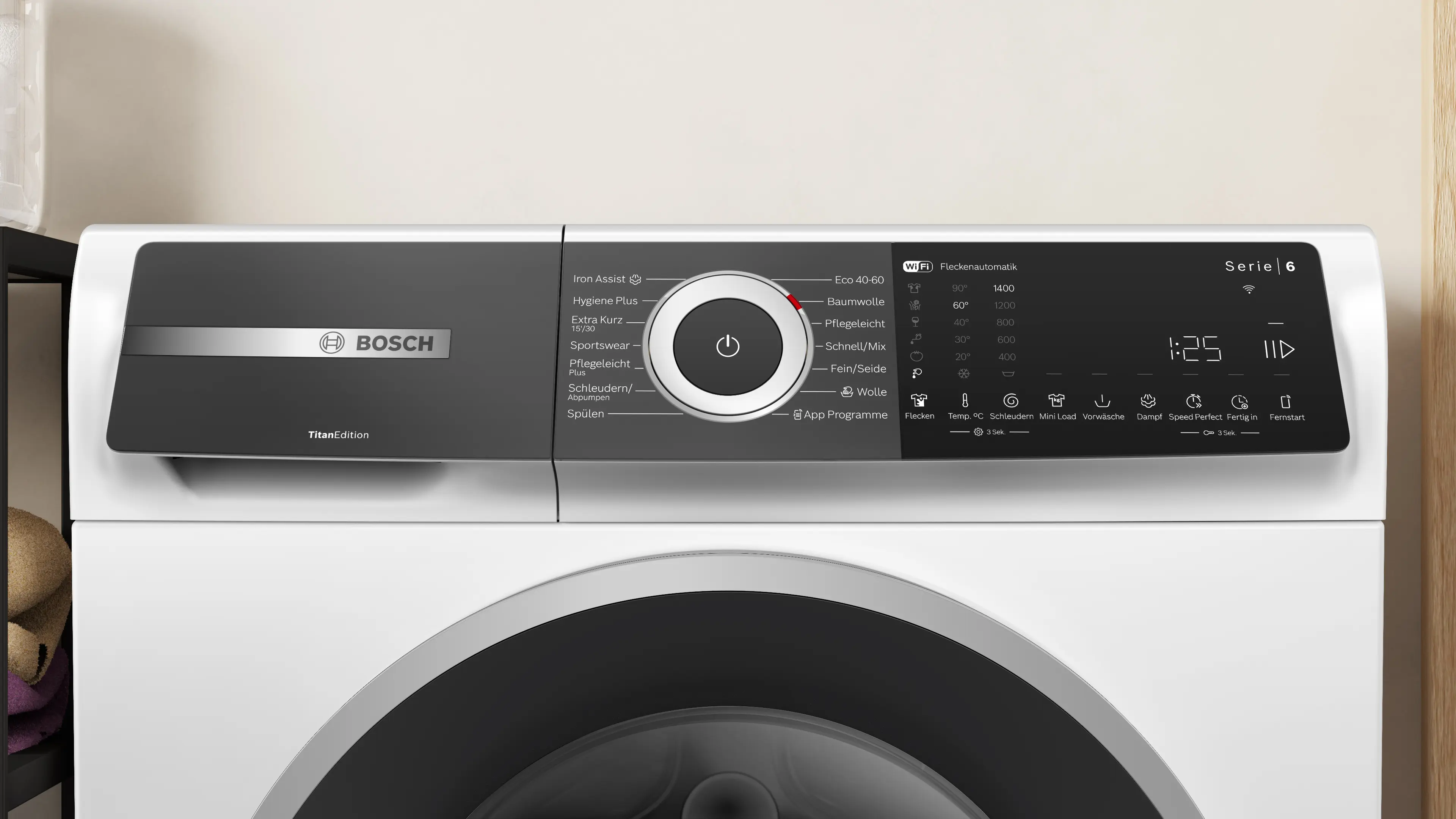 Maximale SchleuderdrehzahlFußnote 1: Die maximale Schleuderdrehzahl wird im Fall von Wäscheunwuchten automatisch reduziert.: 1400 U/min