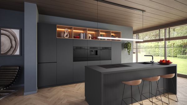 Die Premium-Backöfen der Serie 8 gibt es jetzt ganz neu mit mattem Finish. Das dezente und elegante Design ist die perfekte Ergänzung für moderne Küchen. Die matte Oberfläche des Geräts steht im Kontrast zur glänzenden Benutzeroberfläche, so wird das große TFT Touch-Display mit dem eingravierten digitalen Bedienring optisch hervorgehoben und gibt klare Hinweise zur Navigation durch die Ofeneinstellungen.