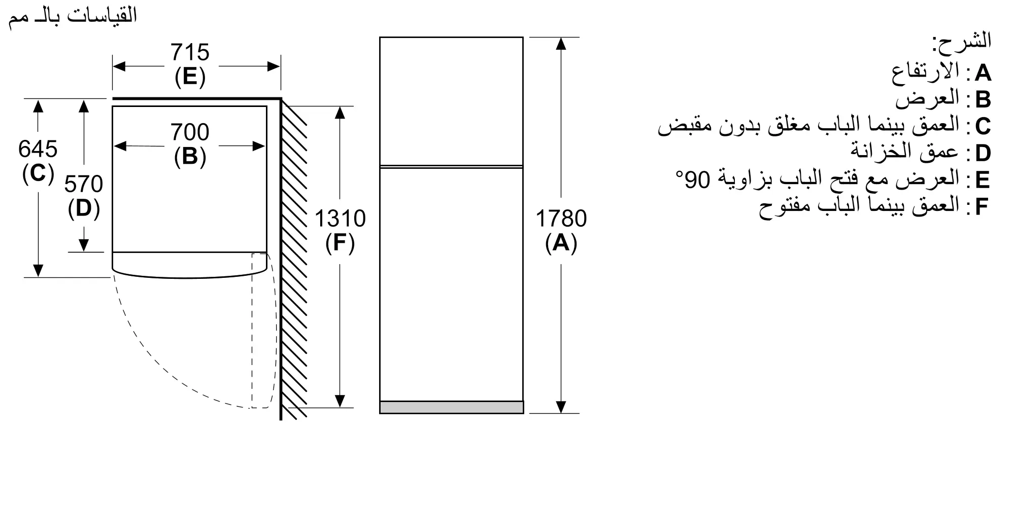 أبعاد المنتج مع المقبض