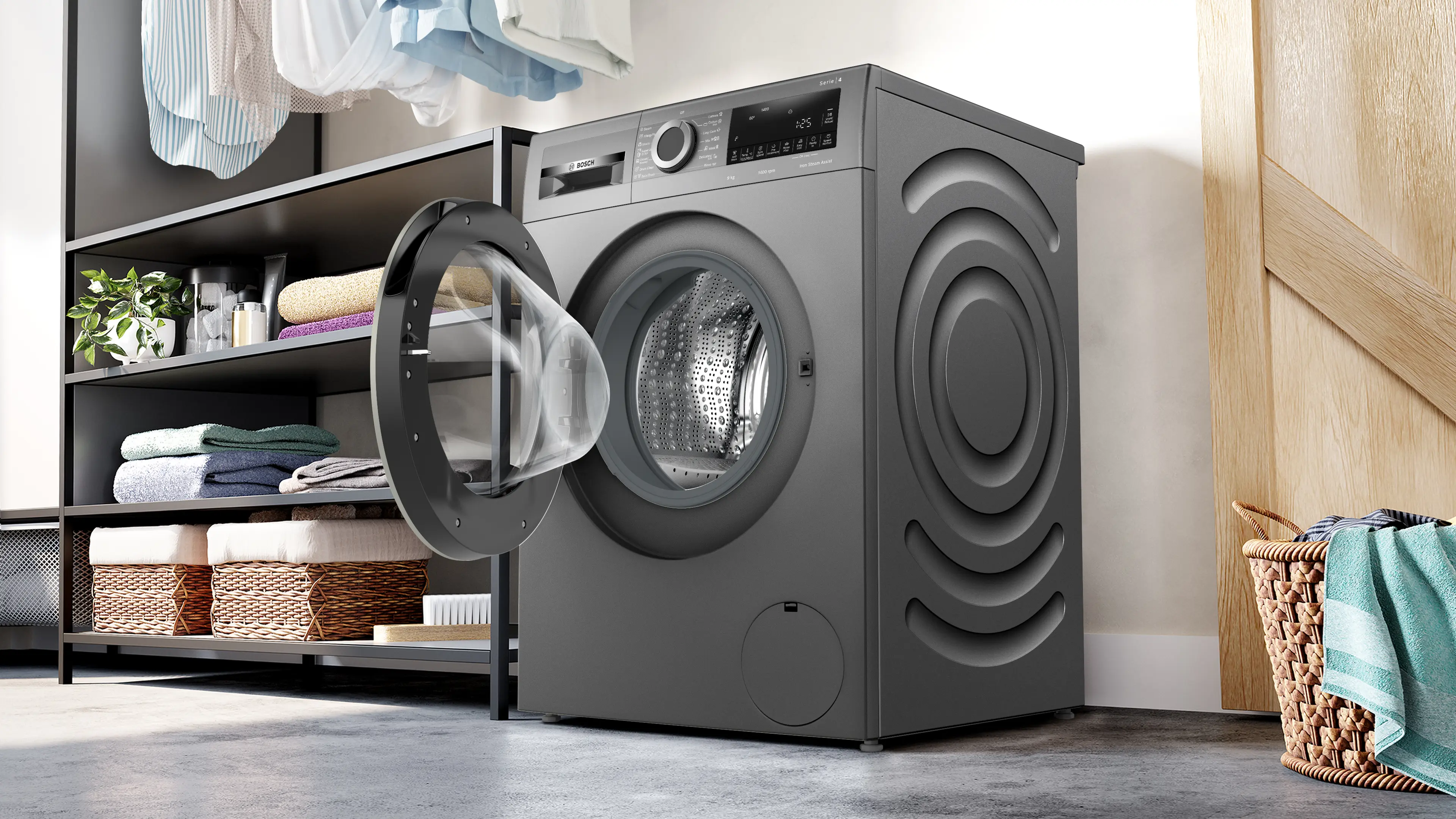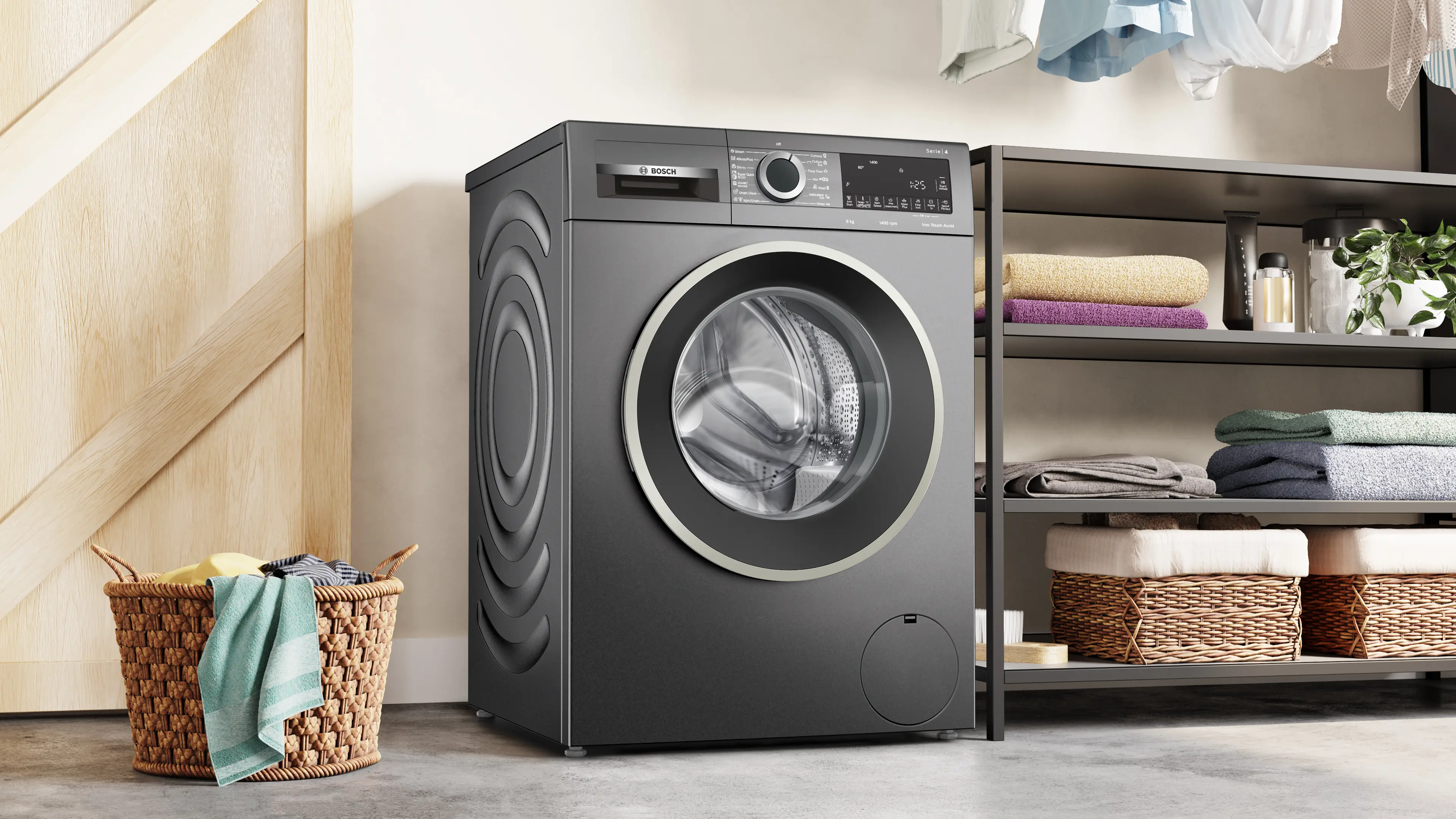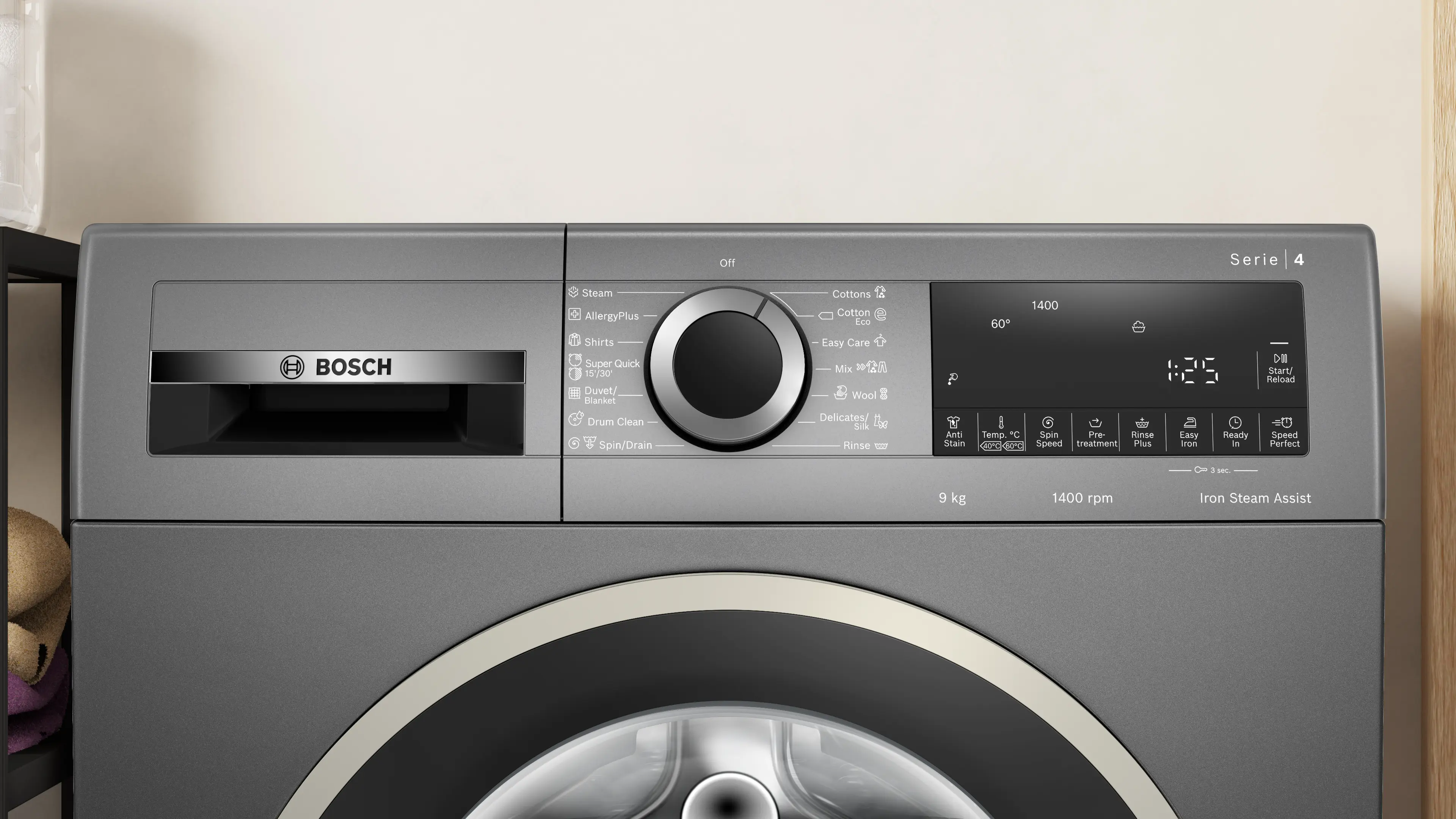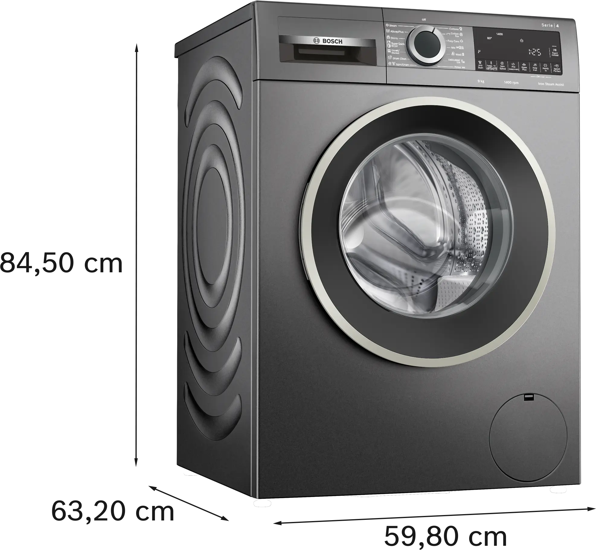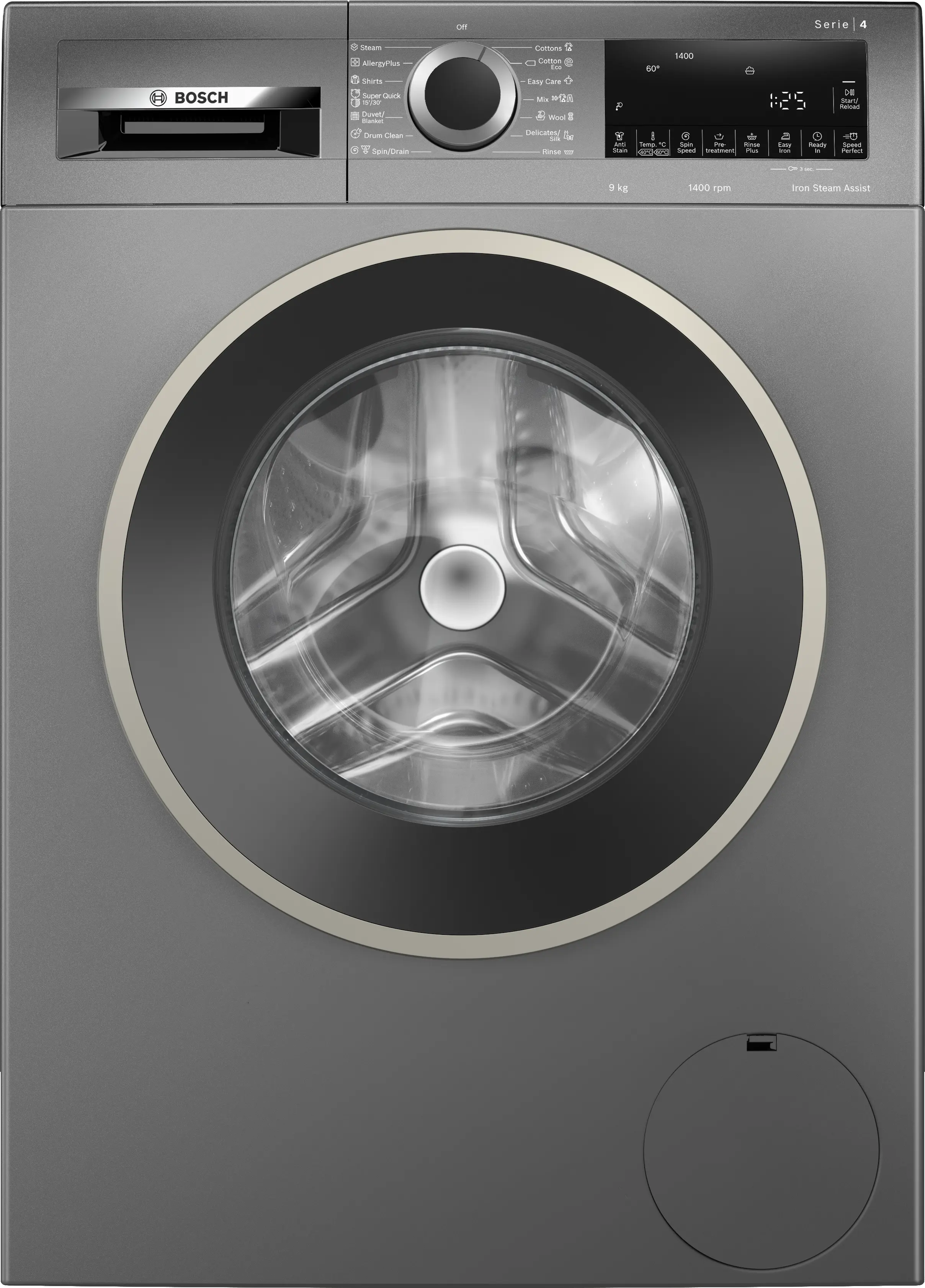 Series 4 washing machine, frontloader fullsize 9 kg , Cast iron greyWGA244Z1EG