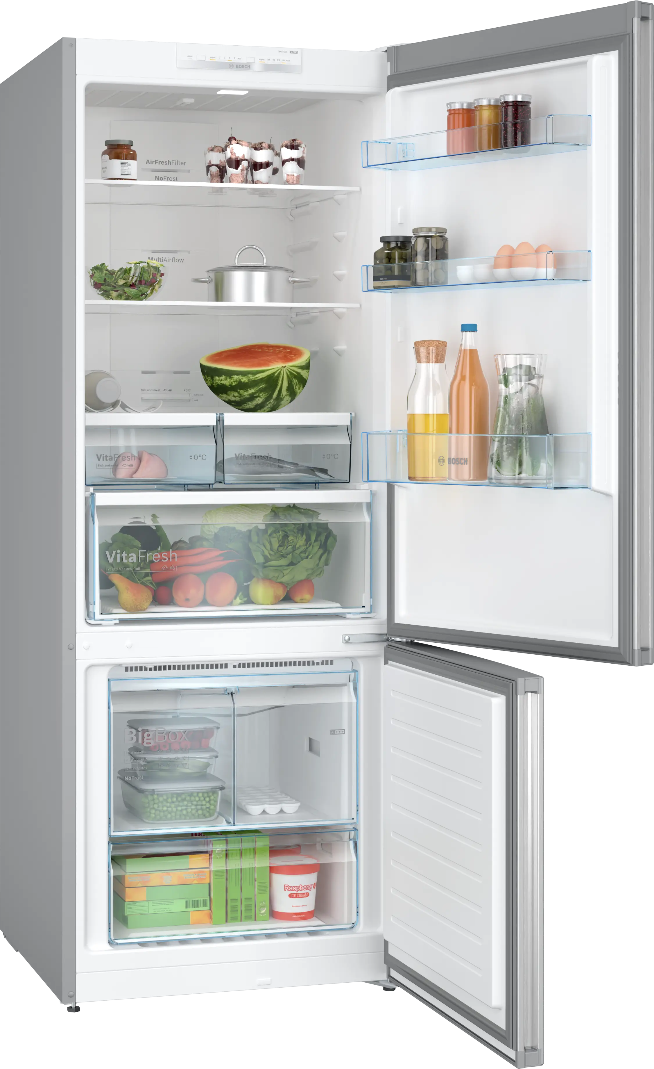 სერია 4 დამოუკიდებლად მდგომი მაცივარი ქვემოთ საყინულით 186 x 70 cm უჟანგავი ფოლადის იერით, Total No FrostKGN55VL21U