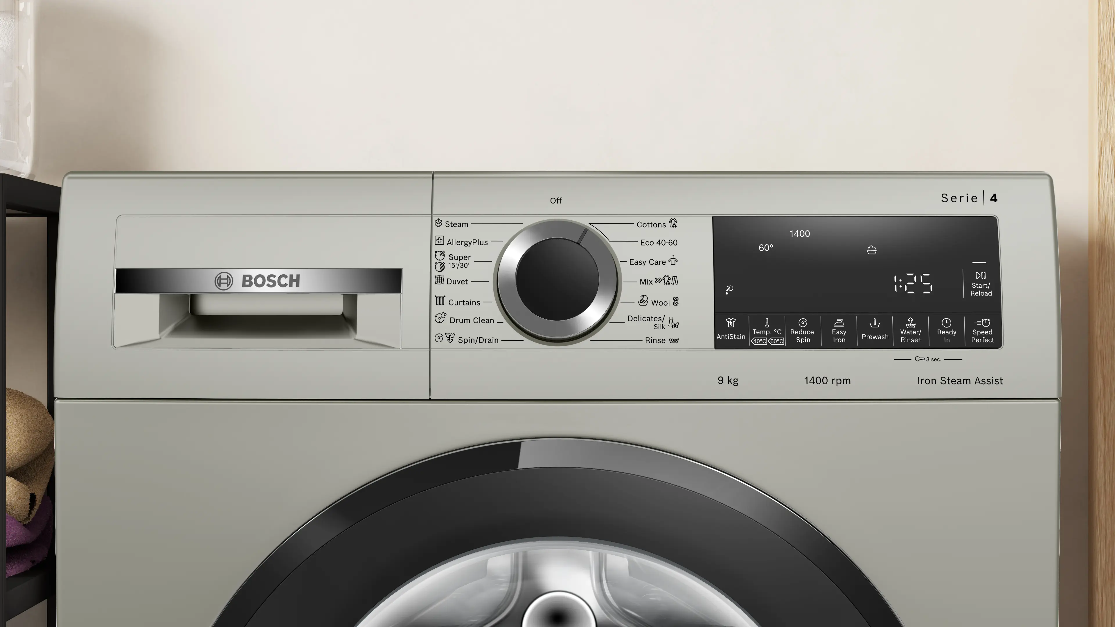 სერია 4 სარეცხის მანქანა, სარეცხი წინა მხრიდან თავსდება მანქანაში 9 kg ,WGA2441XME