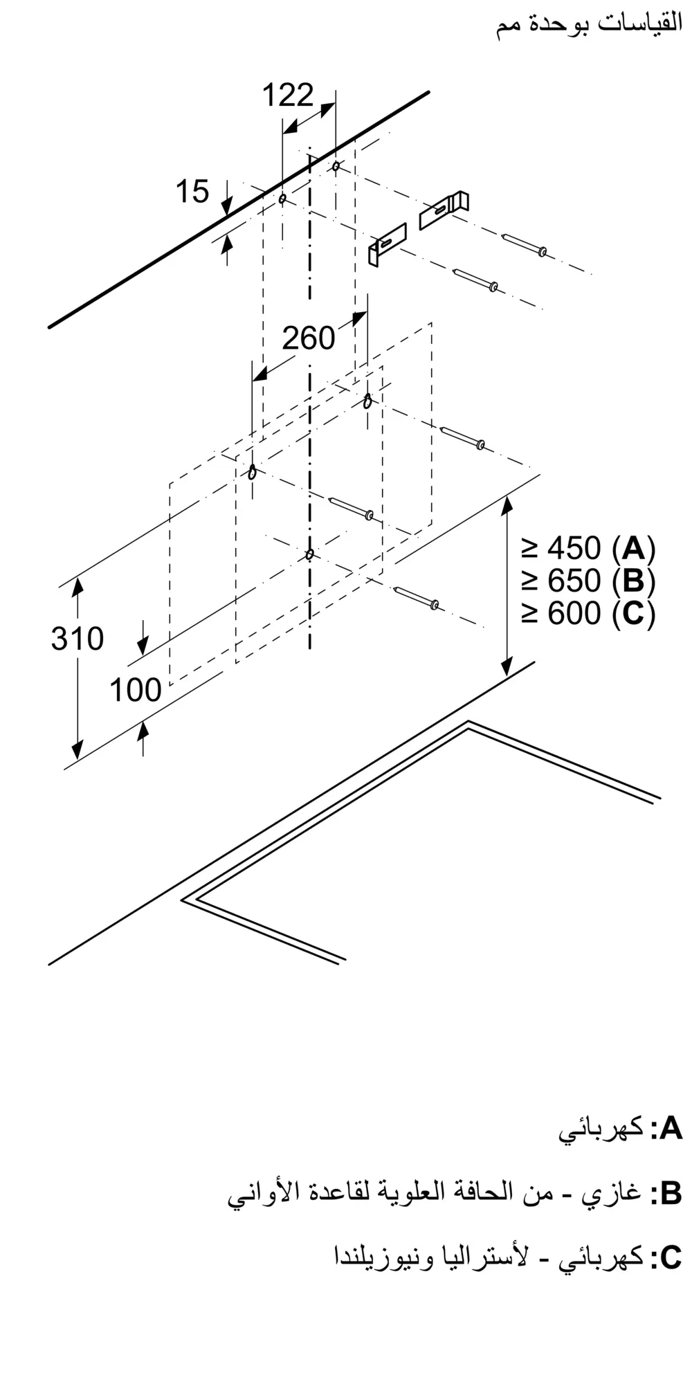 مناسب للاستعمال مع مدخنة أو بتدوير الهواء دون مدخنة مناسب للشفط الأنبوبي أو المعاد تدويره