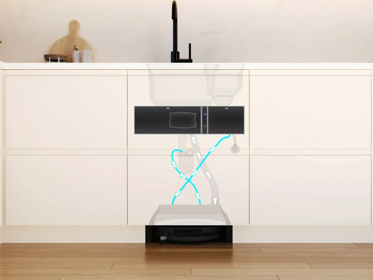 Scopri come il robot aspirapolvere e lavapavimenti a scomparsa viene installato nella tua cucina.