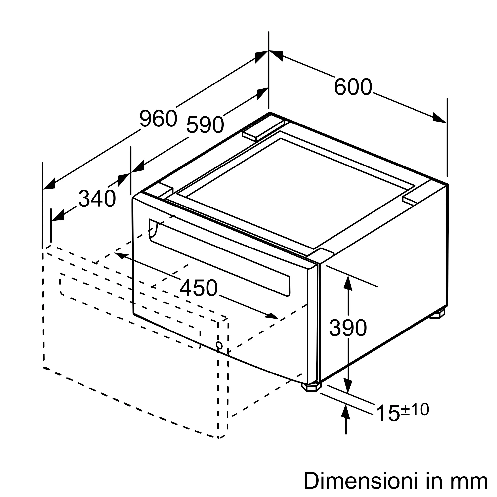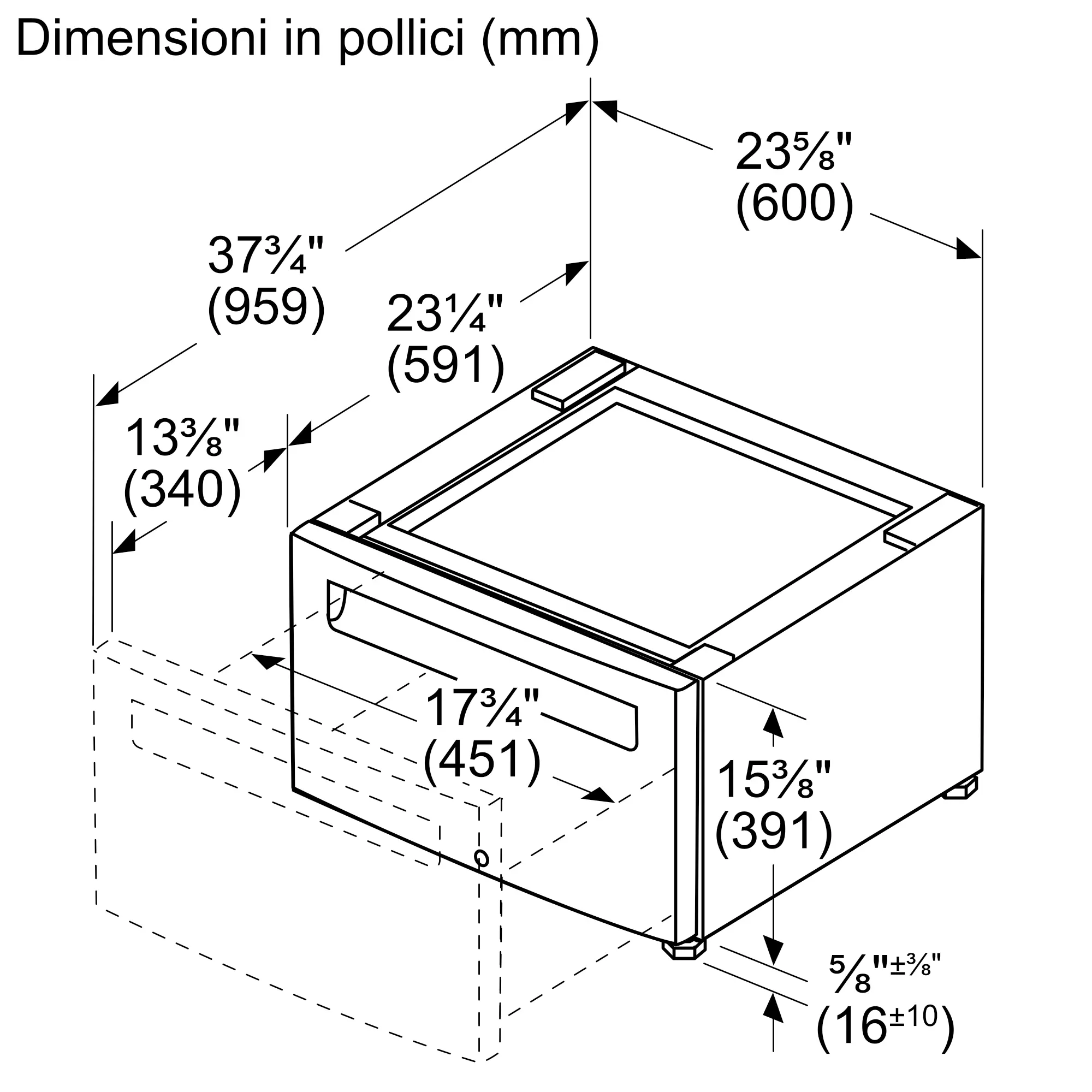 Il piedistallo aumenta l’altezza dell’elettrodomestico per un comodo utilizzo