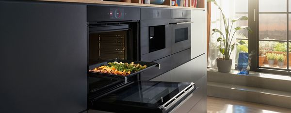 I forni Bosch sono disponibili sia in dimensioni standard che compatte con Air Fry + Steam Function plus.