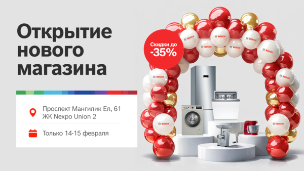 Мы открываем новый фирменный магазин Bosch в Астане и приглашаем вас разделить это событие вместе с нами. В дни открытия вас ждёт праздничная атмосфера, демонстрация техники в работе и специальные предложения, которые помогут сделать выбор проще и выгоднее.