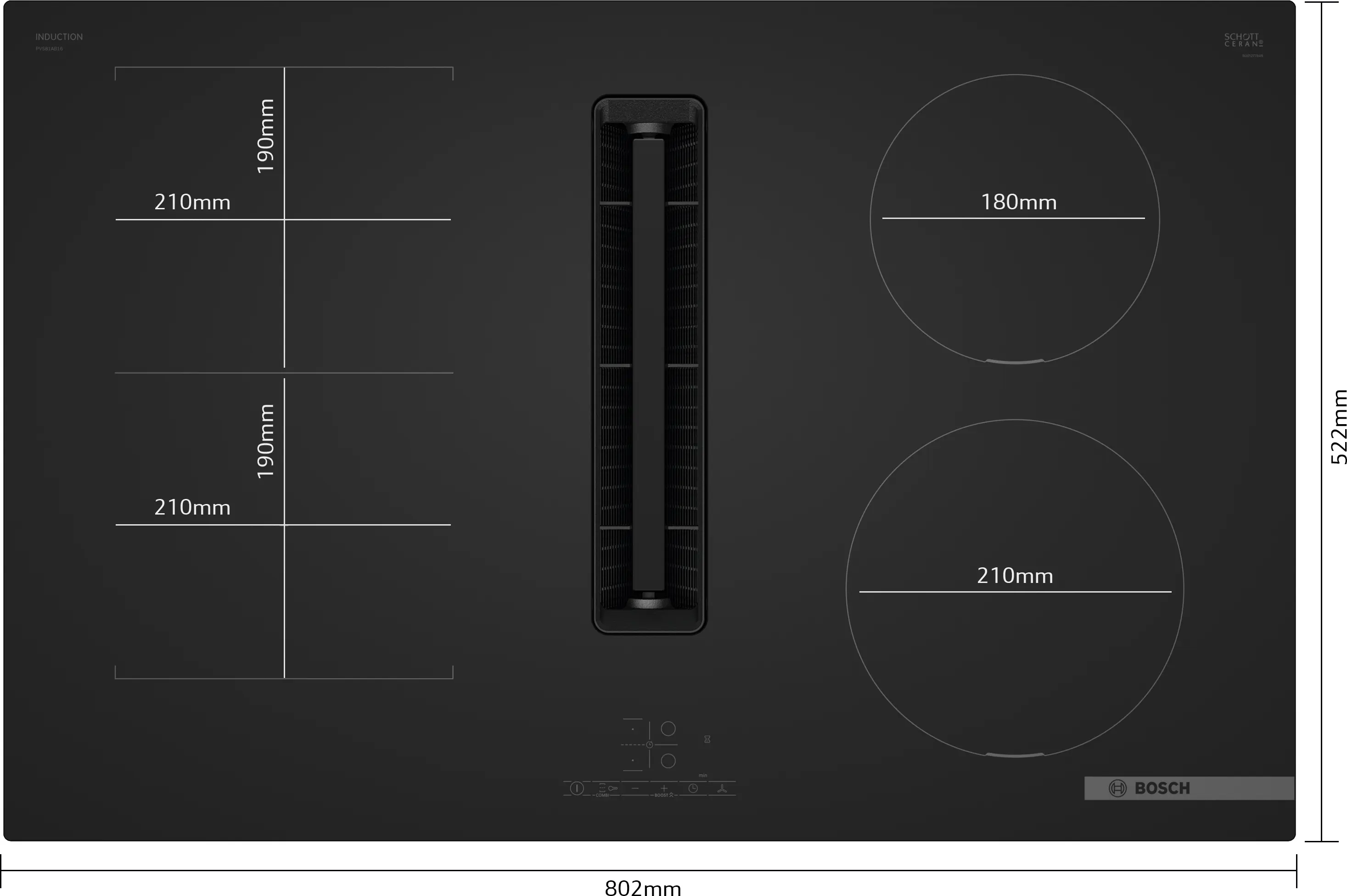 Series 4 Induction hob with integrated ventilation system 80 cm Matt black ,PVS81AB16E