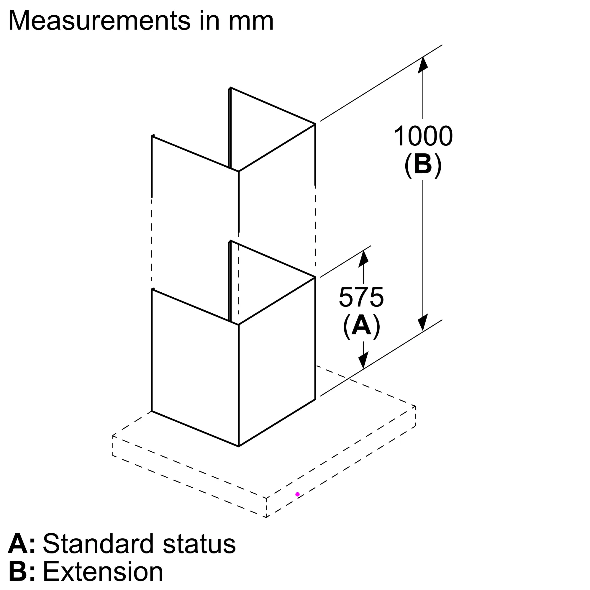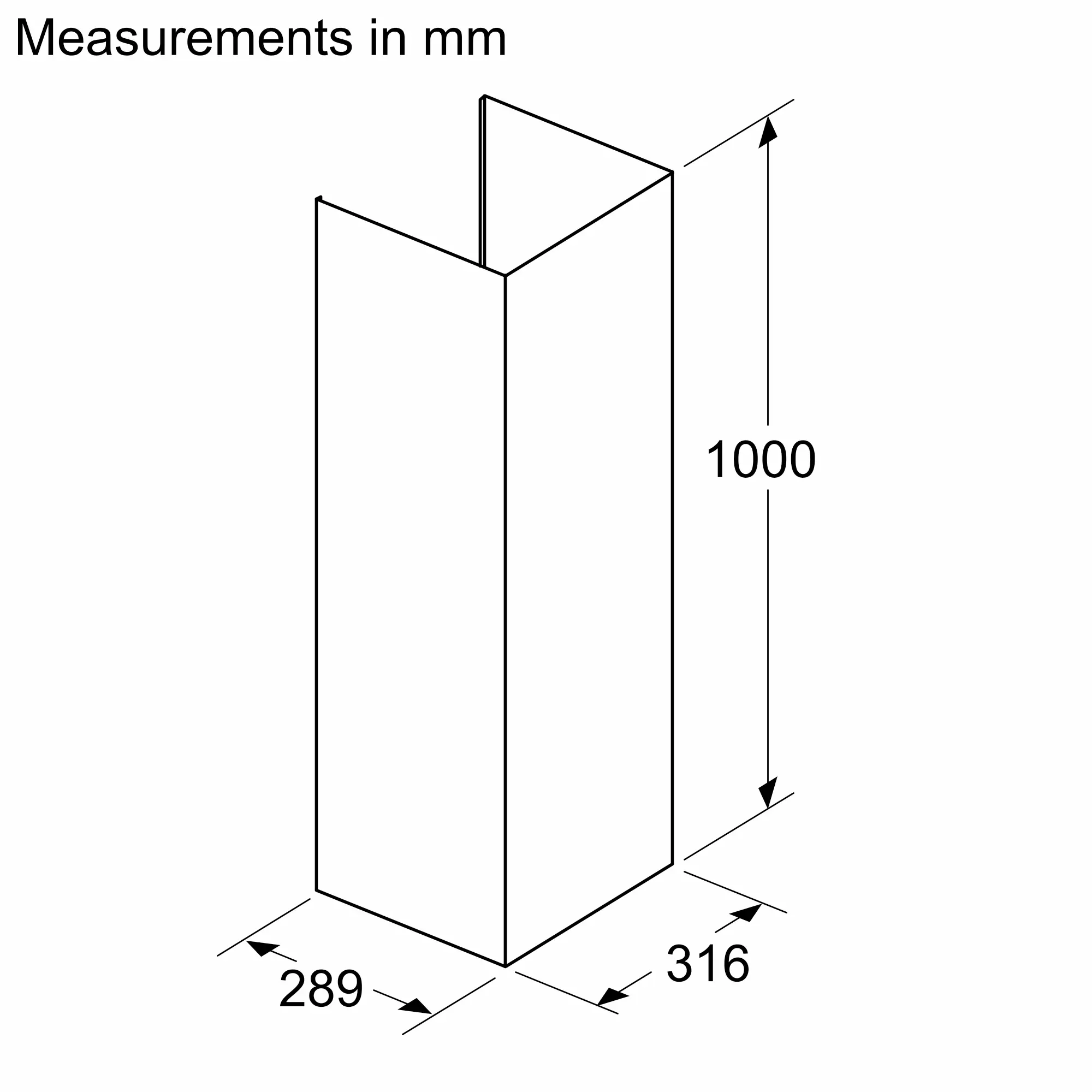 Extension 1000 mm (w/o recirculation slots) for wall chimney hood