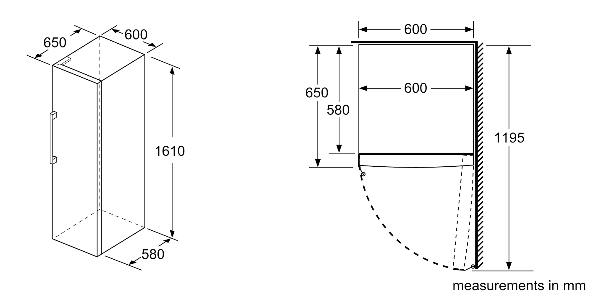 1610x600x650 mm