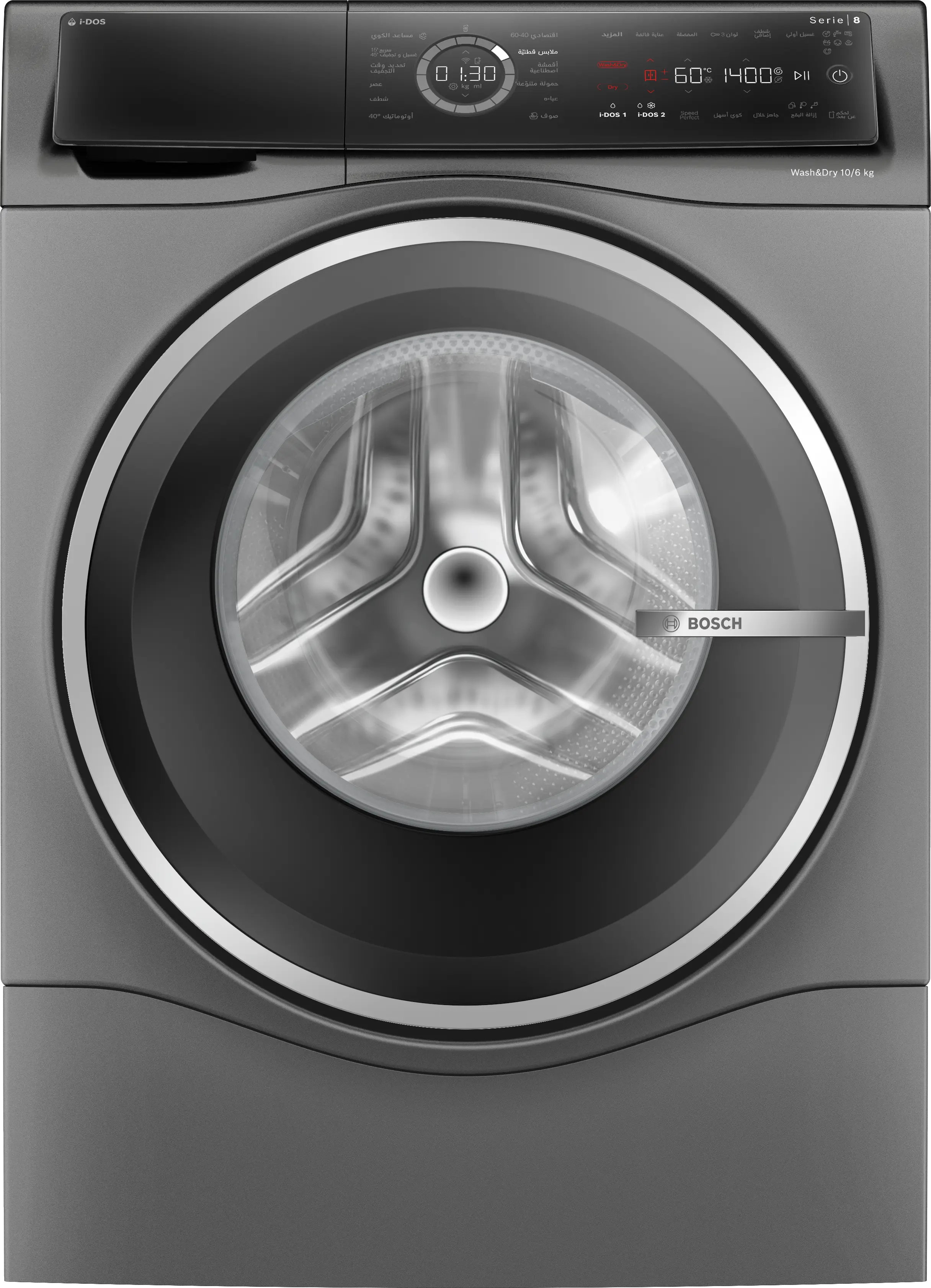سلسلة الطرازات Serie 8 غسالة بمجفف 10/6 kg الحد الأقصى 1400 دورة في الدقيقة, حديد زهر رماديWNC254ARSA