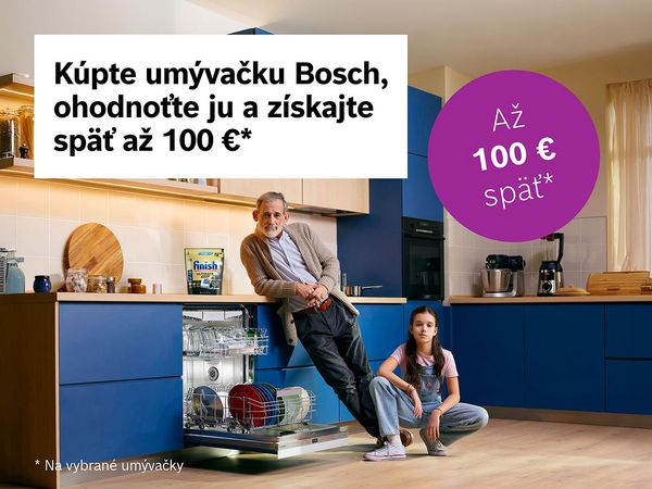 Teraz s mimoriadnou ponukou až 100 eur späť na vybrané modely umývačiek riadu Bosch.