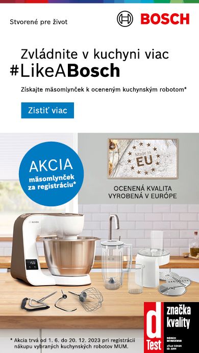Vyberte si jeden z ocenených kuchynských robotov a získajte mäsomlynček* Vyskúšajte kombináciu toho najlepšieho! Zakúpte si v období od 1. 6. do 20. 12. 2023 vybraný kuchynský robot, zaregistrujte ho a získajte mäsomlynček na prípravu dokonalého domáceho tataráku.