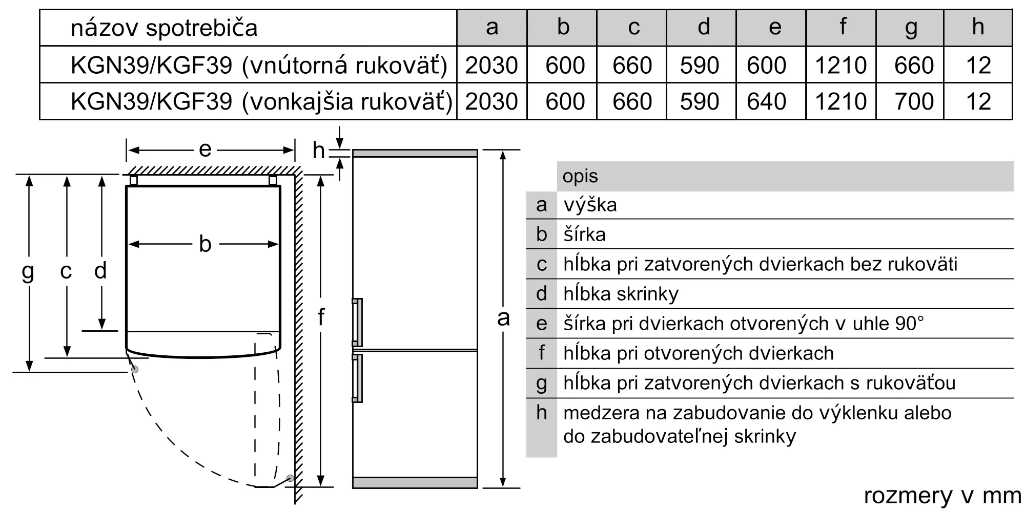 Rozmery spotrebiča