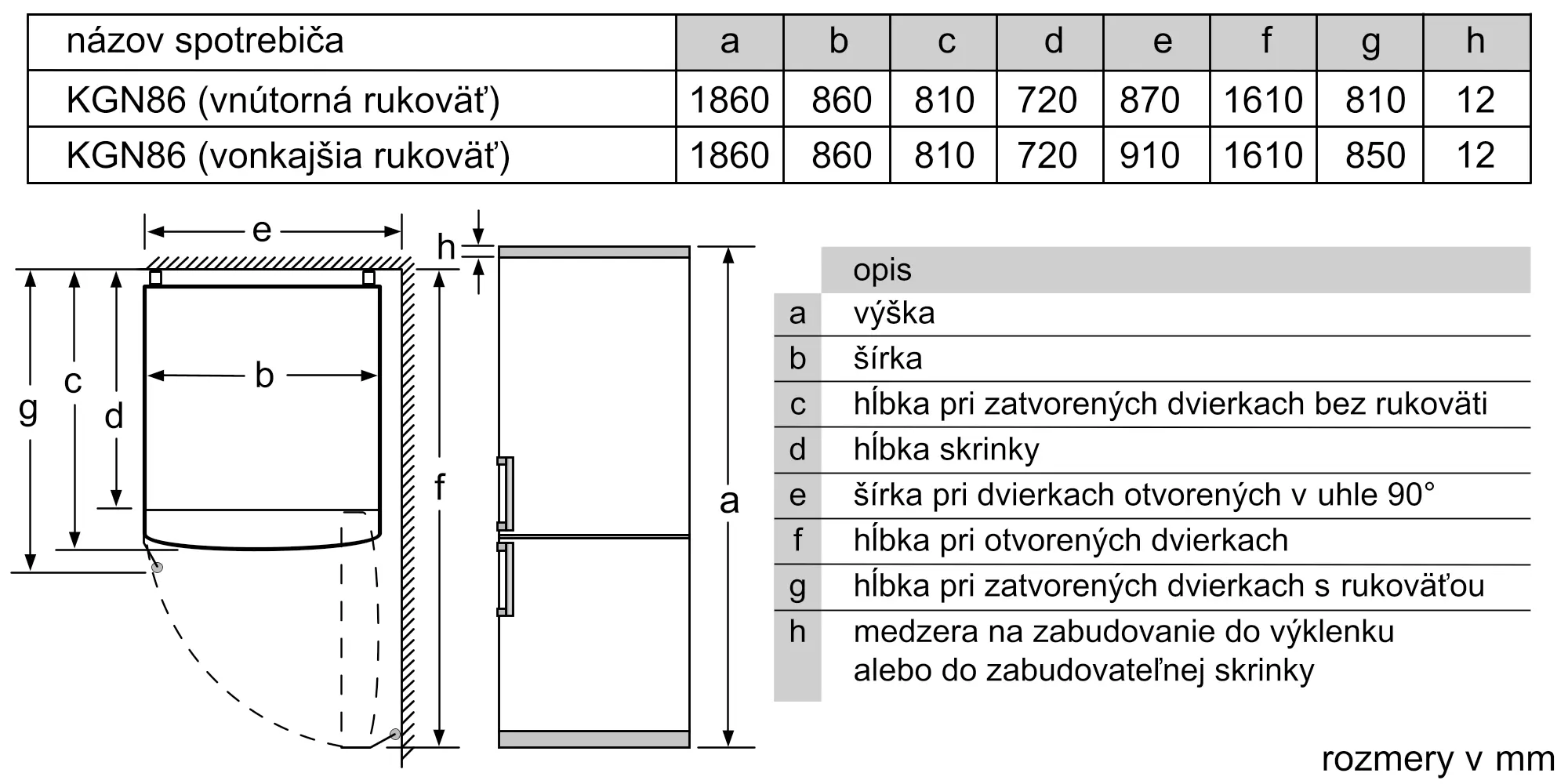 Rozmery spotrebiča