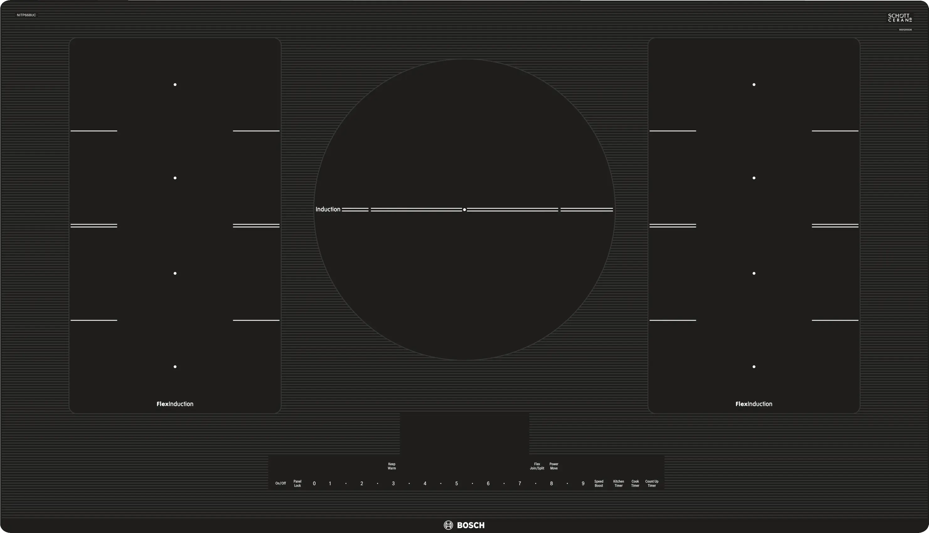 FlexInduction®: combines two cooking zones into one larger zone to accomodate larger dishes.