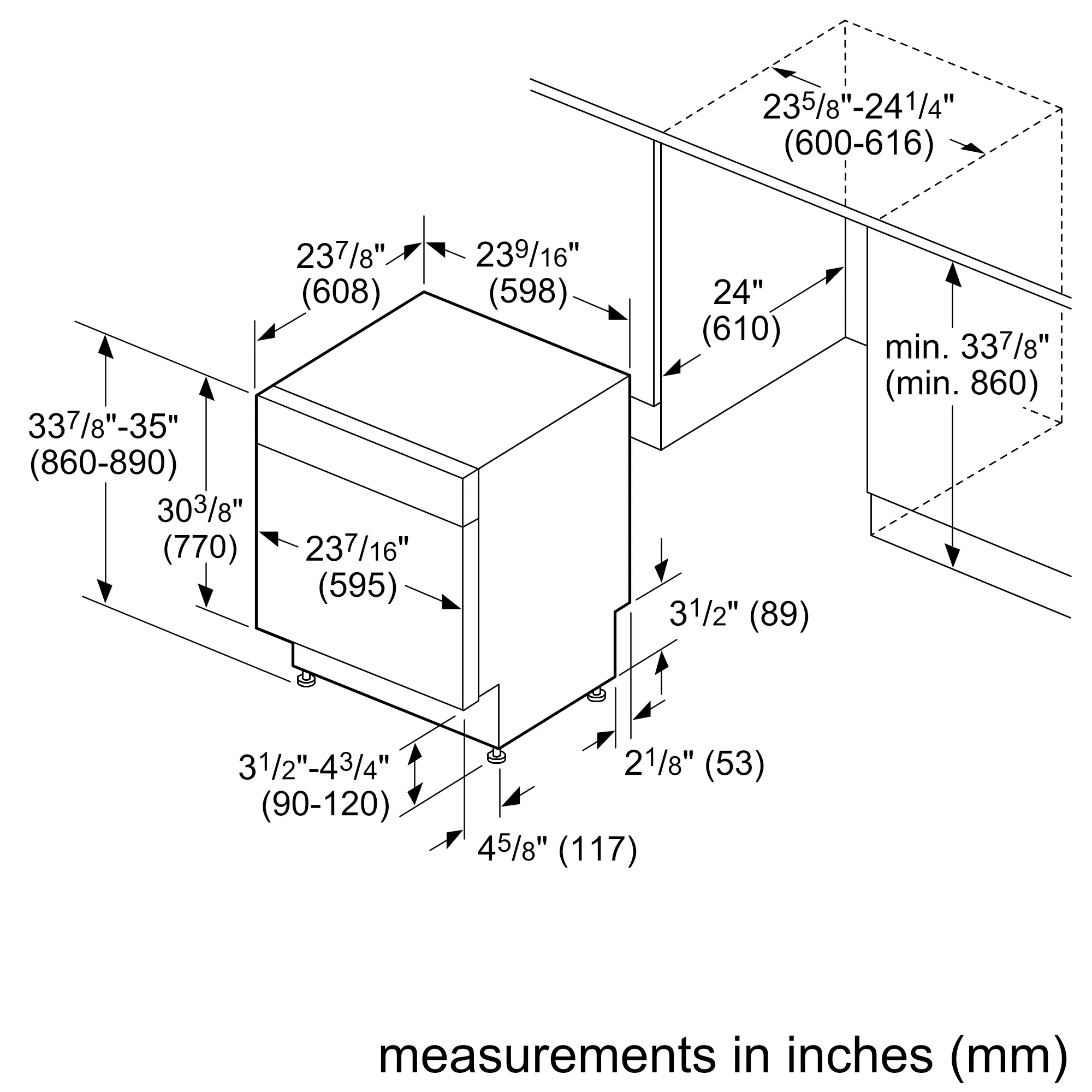 33 7/8 '' x 23 9/16 '' x 23 7/8 ''