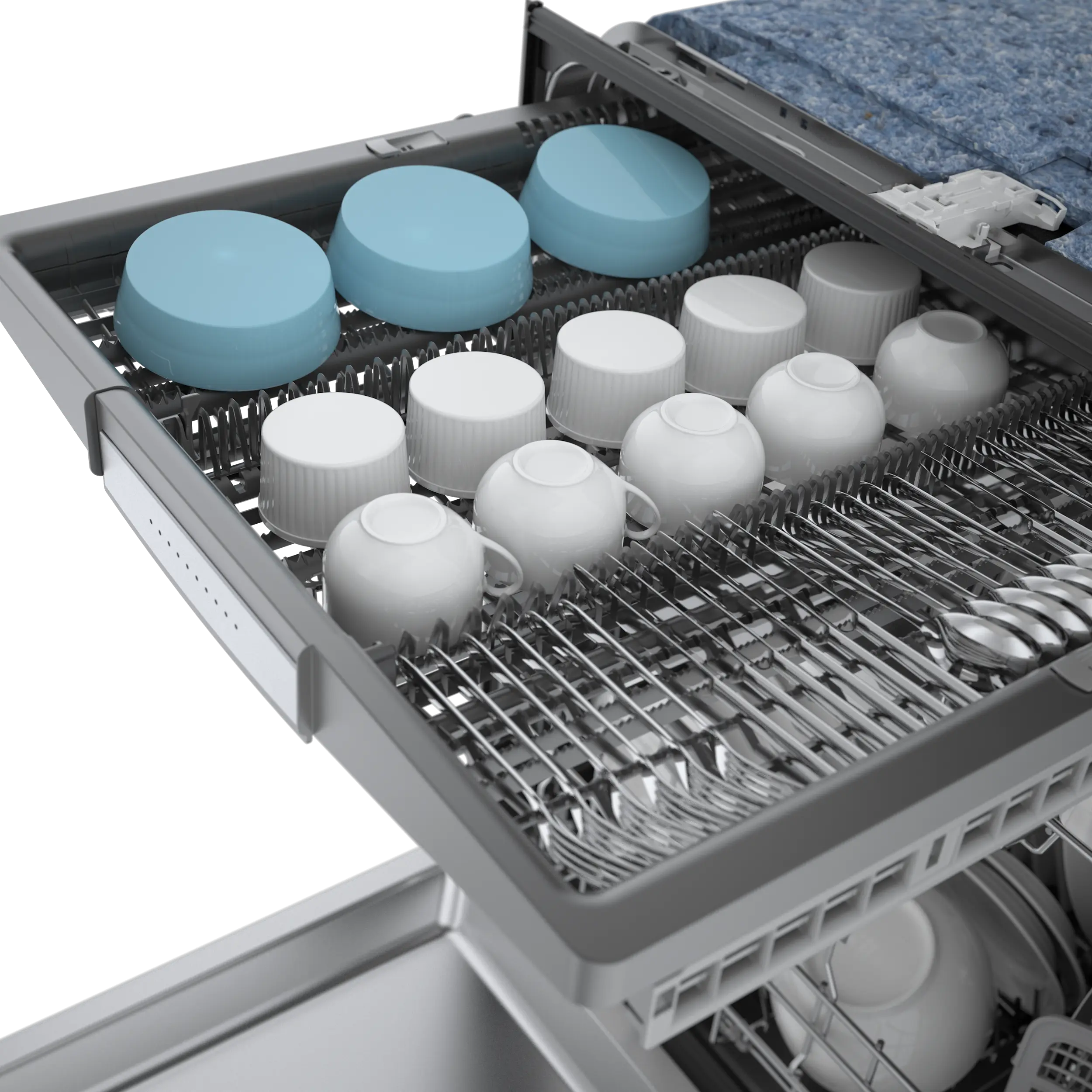 A Standard Silverware Basket to store utensils on the bottom rack