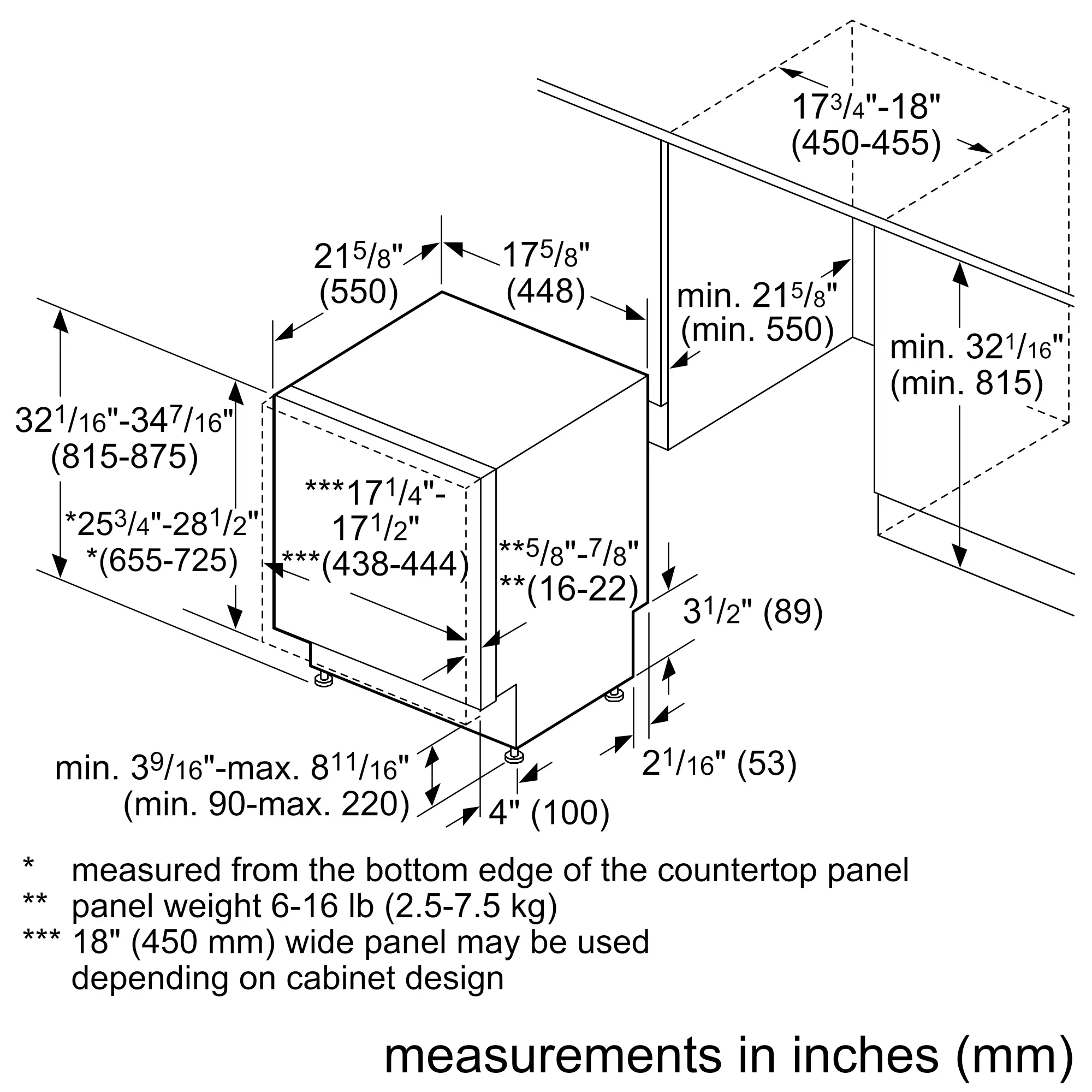 32 1/16'' x 17 5/8'' x 21 5/8''