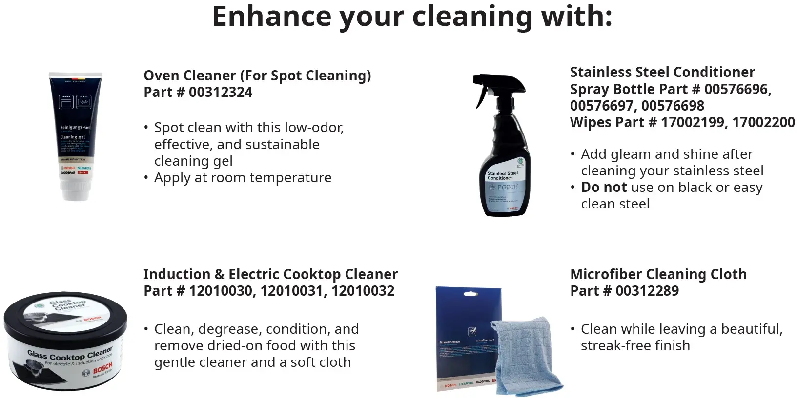 Enter your Model Number above to view accessories and cleaners for your appliance.