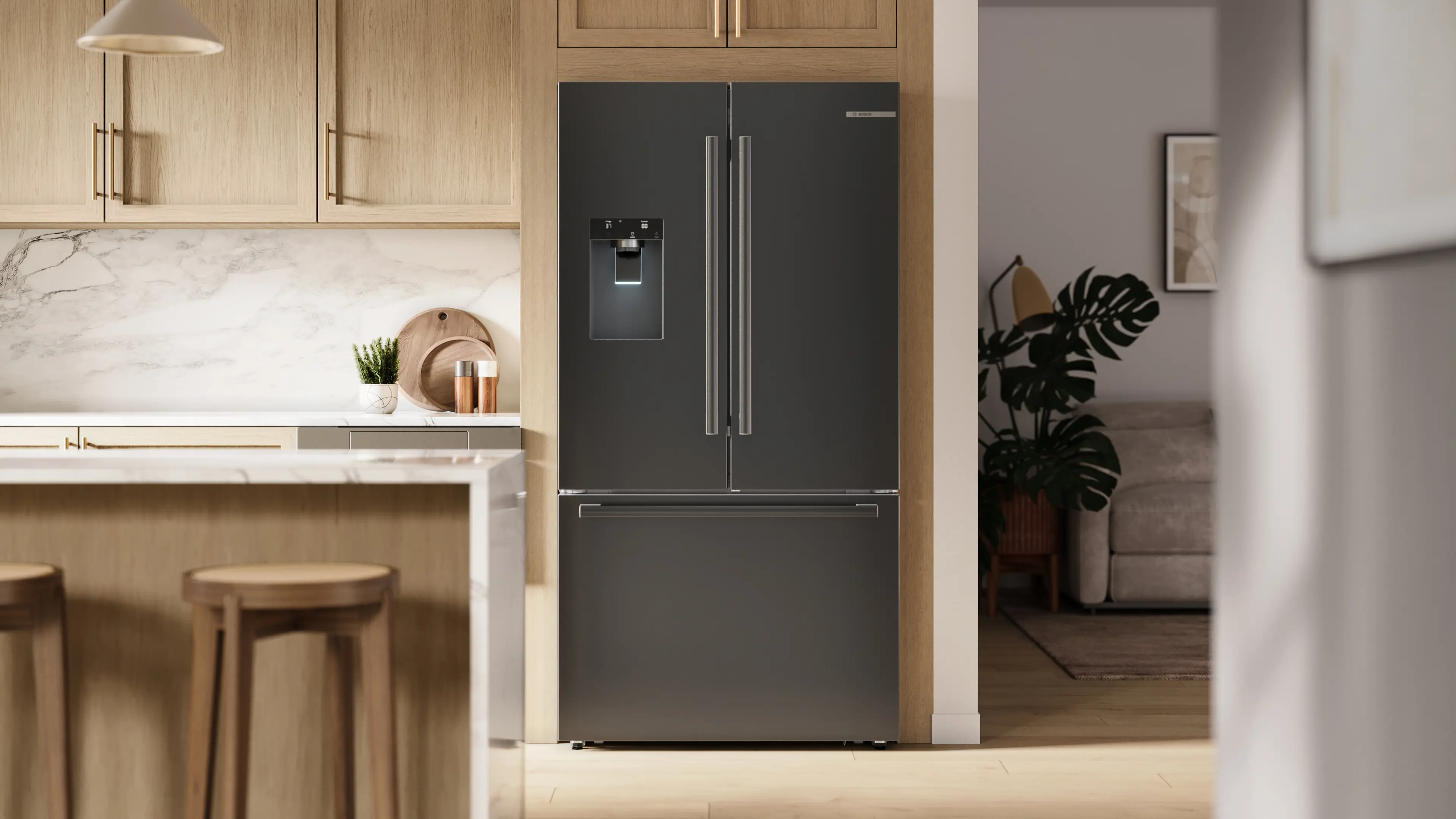 500 Series French Door Bottom Mount Refrigerator 36'' Black Stainless Steel, Total No FrostB36CD52SNB
