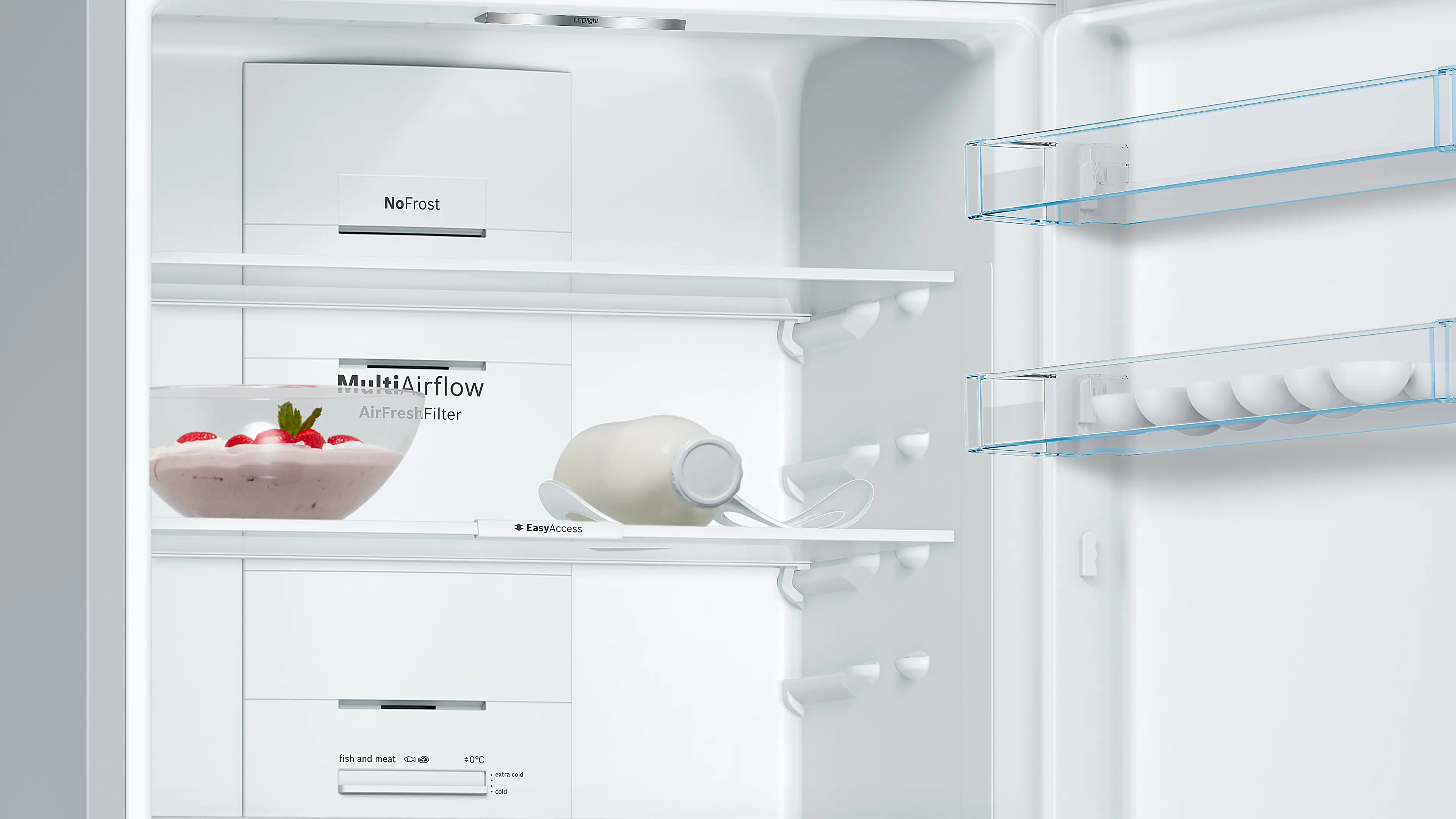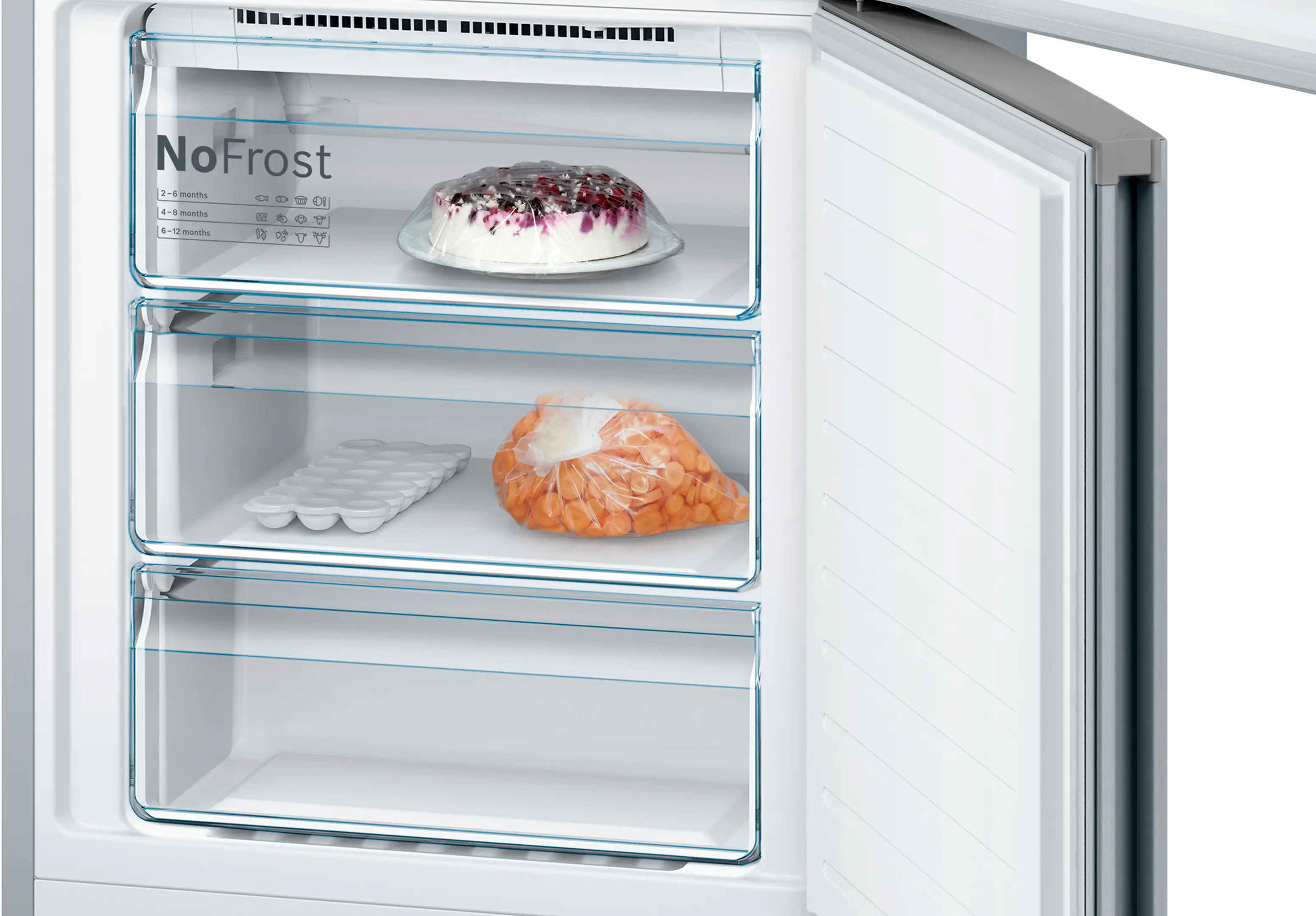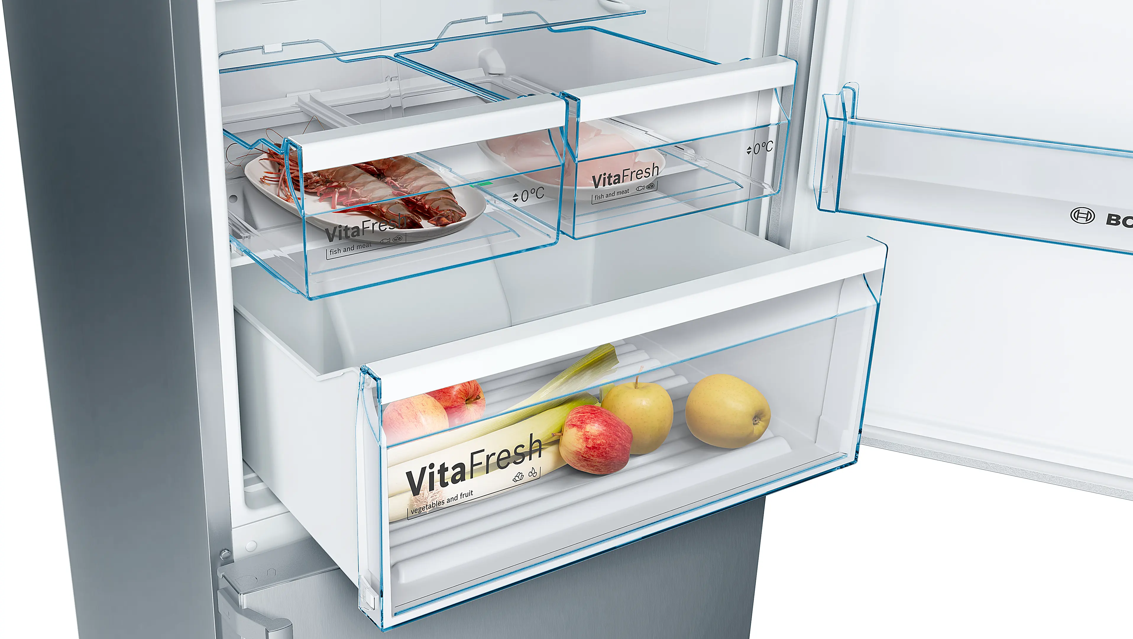 Vario Zone: more flexibility due to variable-use glass shelves and drawers in the freezer compartment.